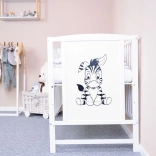 Les fonctions pratiques comprennent 3 positions de sommier (22/38/51 cm) pour s’occuper confortablement de bébé et 3 barreaux amovibles, qui facilitent la sortie autonome de l’enfant plus grand. Le sommier et les barreaux sont solidement fixés, plats et lisses pour une sécurité maximale. Le charmant motif zèbre confère au lit une allure ludique.