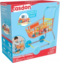Le coffret comprend 16 boîtes et conserves imprimées de manière réaliste avec des aliments, ainsi que des fruits/légumes en plastique, aidant les enfants à s’exercer au tri, au calcul et aux compétences sociales lors des jeux de marchande. Près de la poignée est suspendu un petit sifflet/jeton pour une expérience d’achat encore plus authentique.
