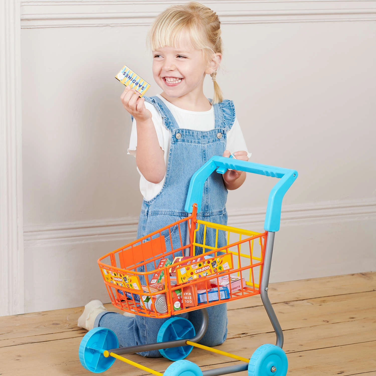 Ce chariot de courses pour enfants est un excellent choix pour les petits vendeurs comme pour les clients. Grâce à la combinaison d’un panier orange, d’une poignée et de roues bleues et de détails jaunes, il est attrayant et encourage le jeu créatif. Les roues larges assurent une stabilité et une maniabilité aisée en intérieur.