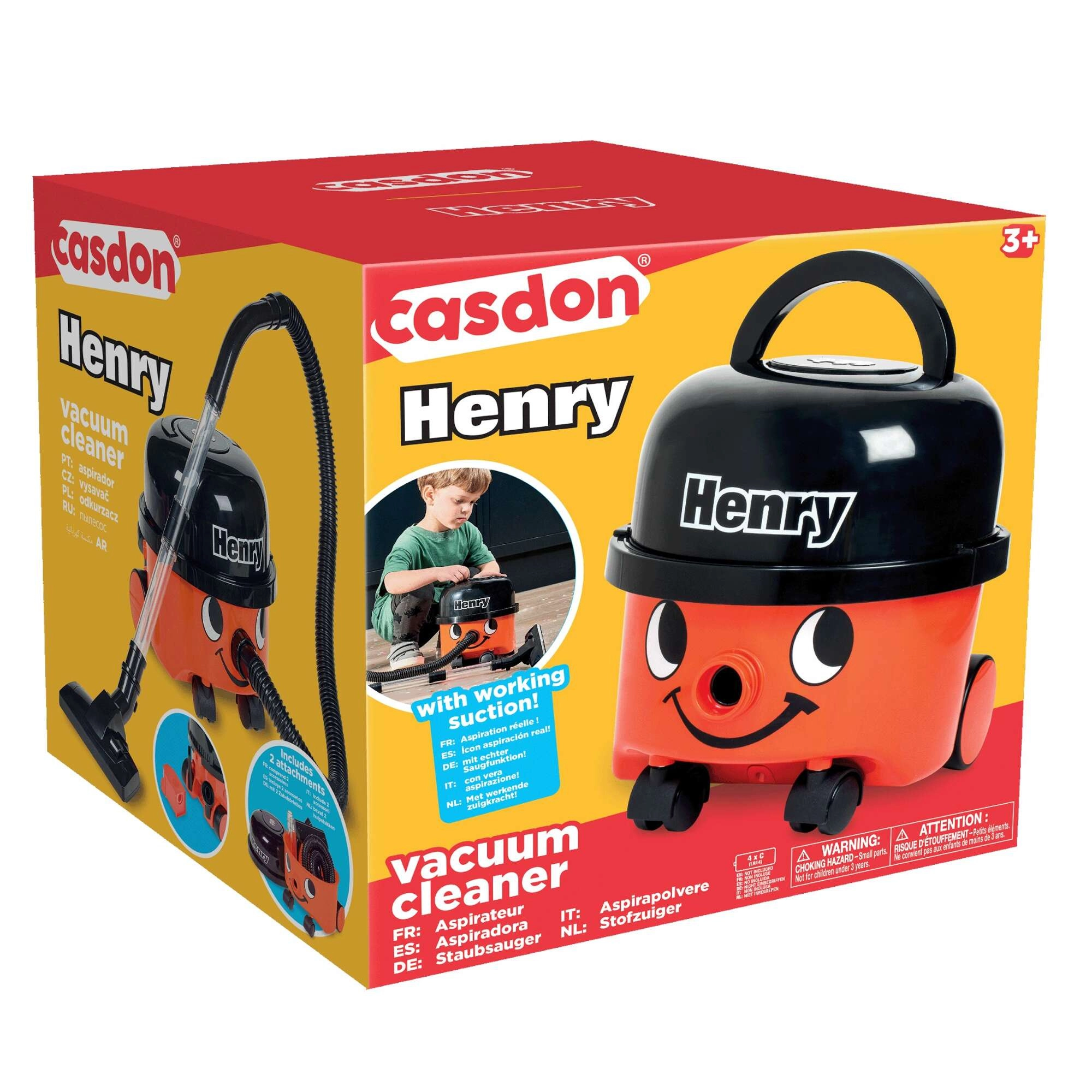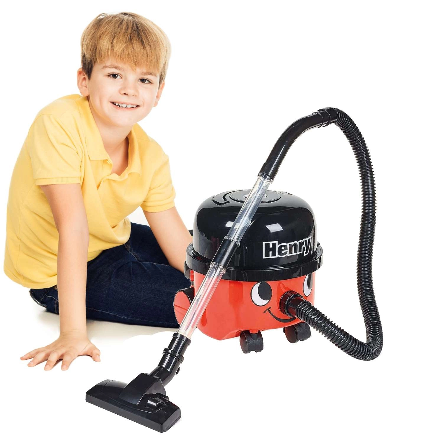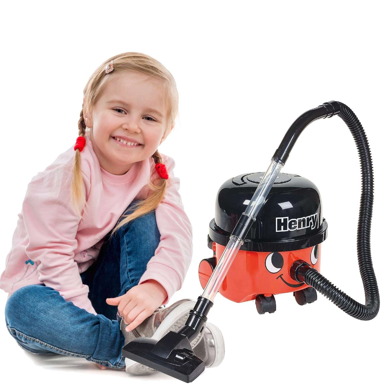 Le populaire HENRY en version enfant transforme le ménage en amusement. Son design réaliste avec un visage souriant, quatre roulettes et un tube transparent ravira les petits aides. L’aspirateur aspire réellement les petites saletés légères (p. ex. confettis ou billes de polystyrène) tout en restant doux et sûr dès 3 ans.
