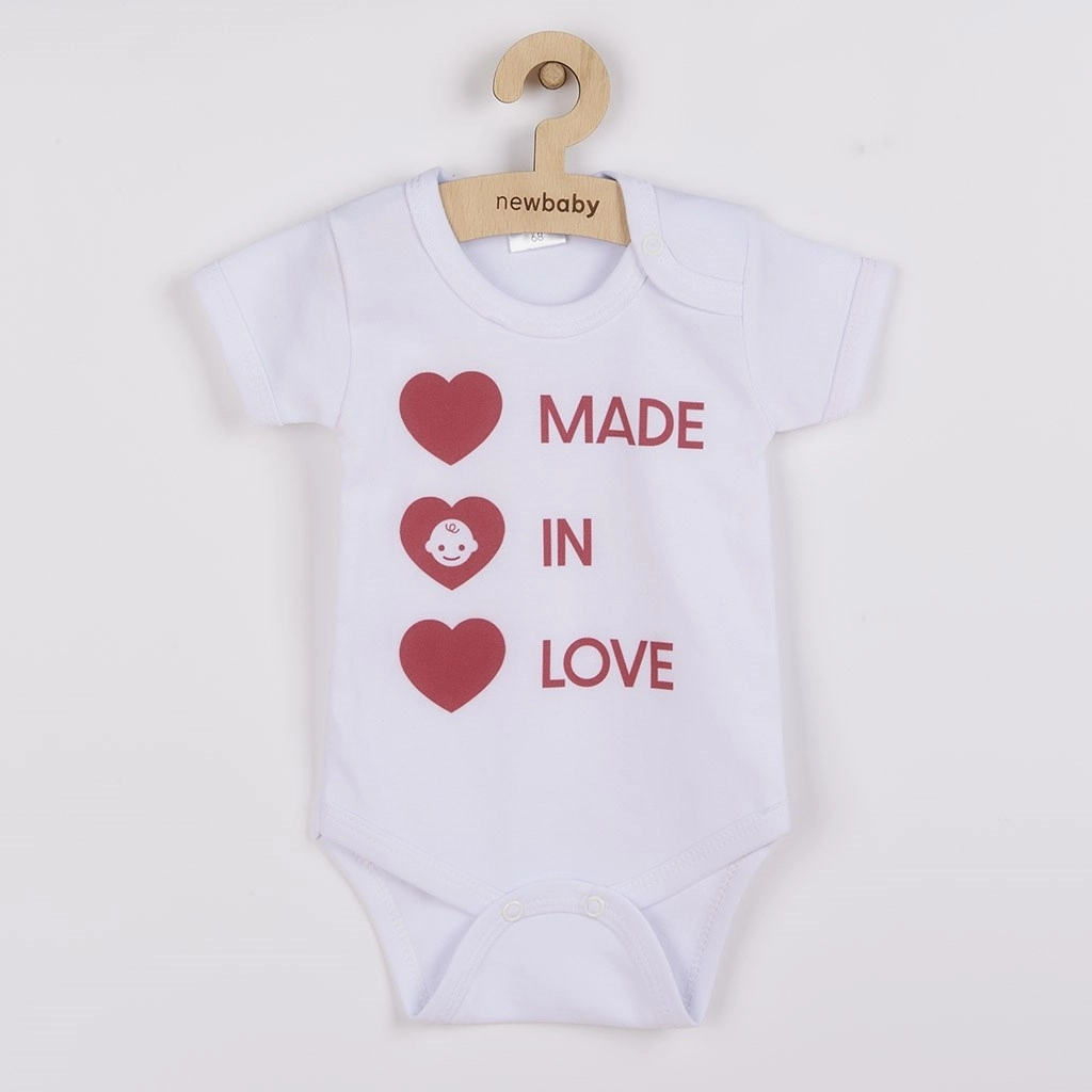 Body New Baby MADE IN LOVE, stylé et doux, idéal comme première tenue et comme joli cadeau de naissance. Grâce au jersey de coton de qualité, il est agréable au toucher, laisse bien respirer la peau et n’irrite pas l’épiderme sensible des nouveau-nés.