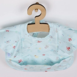 La partie inférieure est doublée d’une couche imperméable qui empêche efficacement les fuites. La poche en double épaisseur retient miettes et gouttes pour garder l’environnement plus propre. En cas de salissure, il suffit d’essuyer le bavoir avec un chiffon humide ou de le laver en machine.