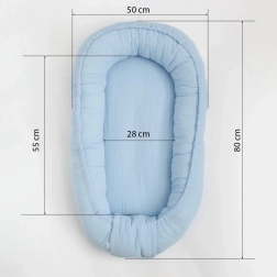 Idéal pour de multiples usages – dans le lit bébé, la poussette, sur le canapé ou au sol. Les bords souples aident à créer une position confortable pour le sommeil et le repos, et la mousseline respirante favorise un microclimat sain.