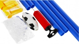 - 12× pièces du cadre du but, 1× filet, 1× ballon (dégonflé), 1× pompe manuelle avec aiguille