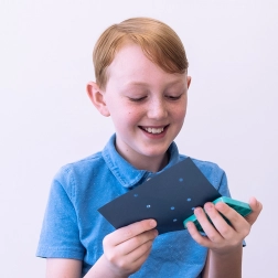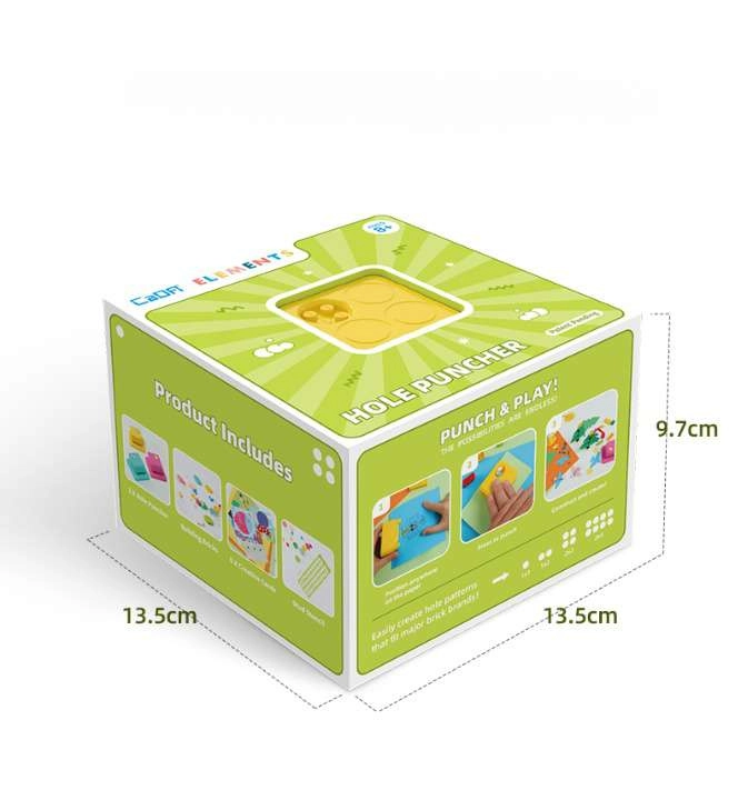 Découvrez un loisir créatif en papier associé à des éléments de construction. Le perforateur réglable CADA en bleu permet aux enfants de réaliser facilement des trous réguliers dans les gabarits et les cartes, qu’ils remplissent ensuite avec des briques colorées. Grâce à la plaque magnétique transparente, le travail est précis, propre et sûr.