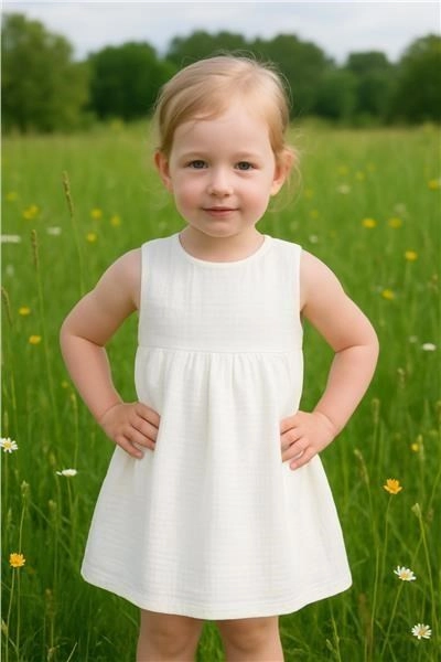Petite robe en mousseline légère New Baby Elizabeth pour petites coquettes, taille 68. Sans manches, coupe évasée en A, fermeture pression dans le dos pour un habillage facile. En matière agréable, douce et de qualité 100 % coton – respirante, douce pour la peau de bébé et idéale pour l’été.