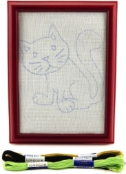 La broderie avec cadre est idéale pour les enfants qui aiment créer et veulent essayer de broder. Ce kit contient une image préimprimée dans un cadre et trois fils de coton de différentes couleurs pour plus de créativité. C'est un excellent moyen de développer la motricité fine et la pensée créative chez les enfants.