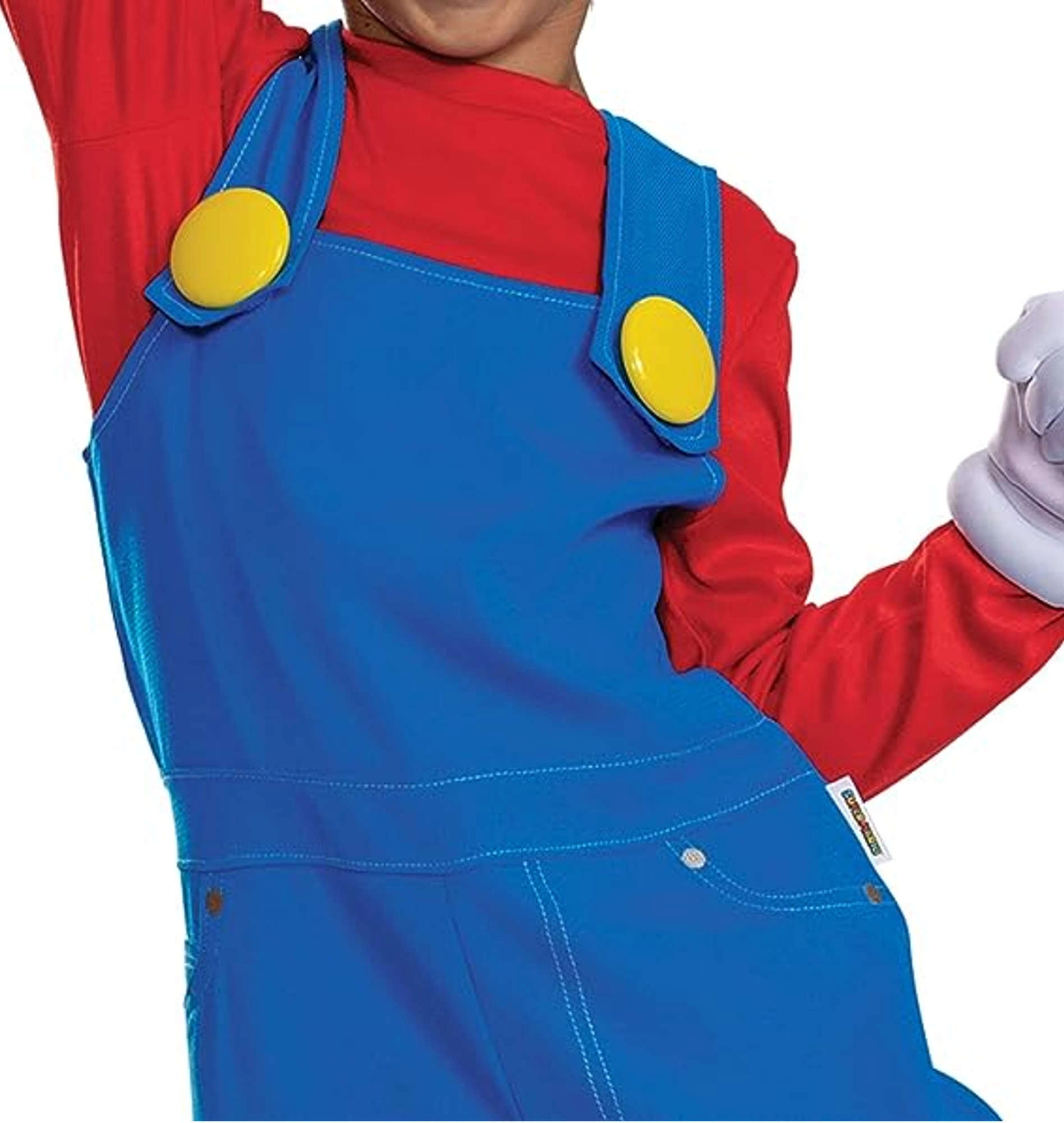 L’emballage contient tout ce dont les enfants ont besoin pour un déguisement parfait : combinaison rouge et bleue avec boutons jaunes, casquette et moustache autocollante. Le matériau 100 % polyester est léger, agréable et adapté au jeu à la maison comme en extérieur.