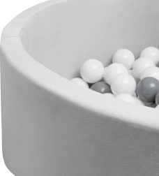 Le bassin s’intègre aussi bien dans un intérieur moderne que classique et se transporte ou se nettoie facilement grâce à sa maintenance aisée et à sa housse amovible avec fermeture éclair dissimulée. L’emballage comprend 150 balles en plastique blanches et grises, certifiées et conformes aux normes de sécurité requises.