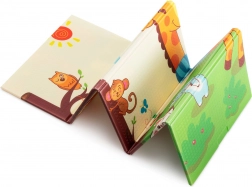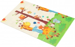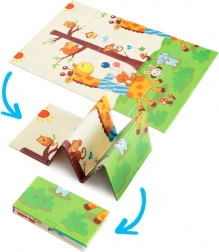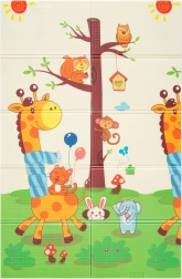 La mousse XPE premium est inodore, non toxique et résistante à l’usure. Grâce à son épaisseur de 0,8 cm, elle absorbe efficacement les chocs et assure une isolation contre le sol froid. Les deux faces sont ornées de motifs attrayants – l’une avec de charmantes girafes, l’autre avec des animaux sur fond coloré – qui favorisent le développement visuel des enfants.