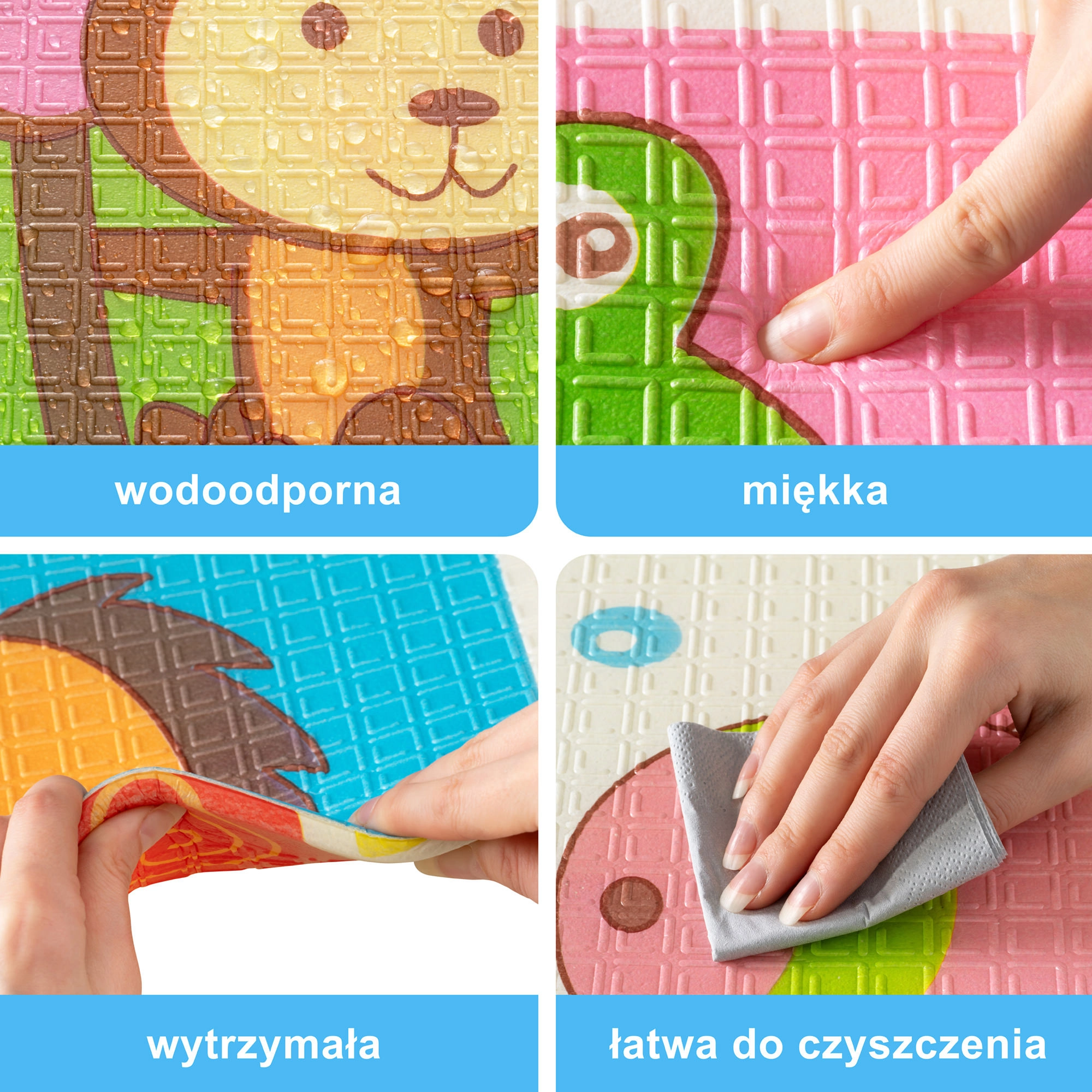Le tapis est 100 % sûr : sans formamide, phtalates, PVC ni BPA, marqué CE et conforme aux normes européennes EN71-1, EN71-2, EN71-3 ainsi qu’à REACH. Idéal dès la naissance pour jouer au quotidien à la maison comme en extérieur – dans la chambre d’enfant, le salon, sur le balcon ou au jardin.