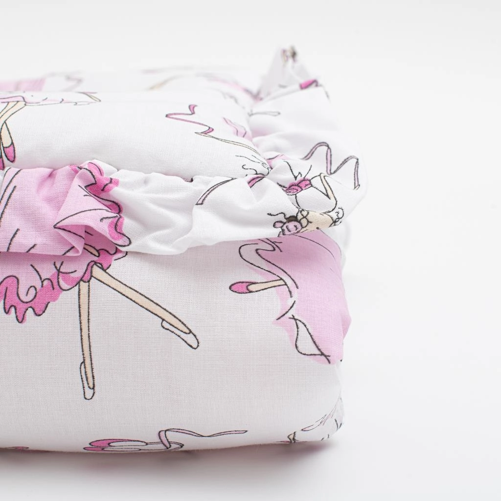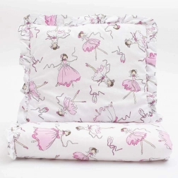 Adorable ensemble en coton pour landau New Baby Ballerina Bella offrant confort et chaleur à votre bébé. Il comprend un petit oreiller et une couette avec volant et motif de ballerine, garnis de fibres anti-allergéniques. Confectionné en 100 % coton de haute qualité, doux pour les peaux sensibles et facile d’entretien.