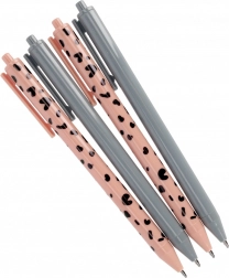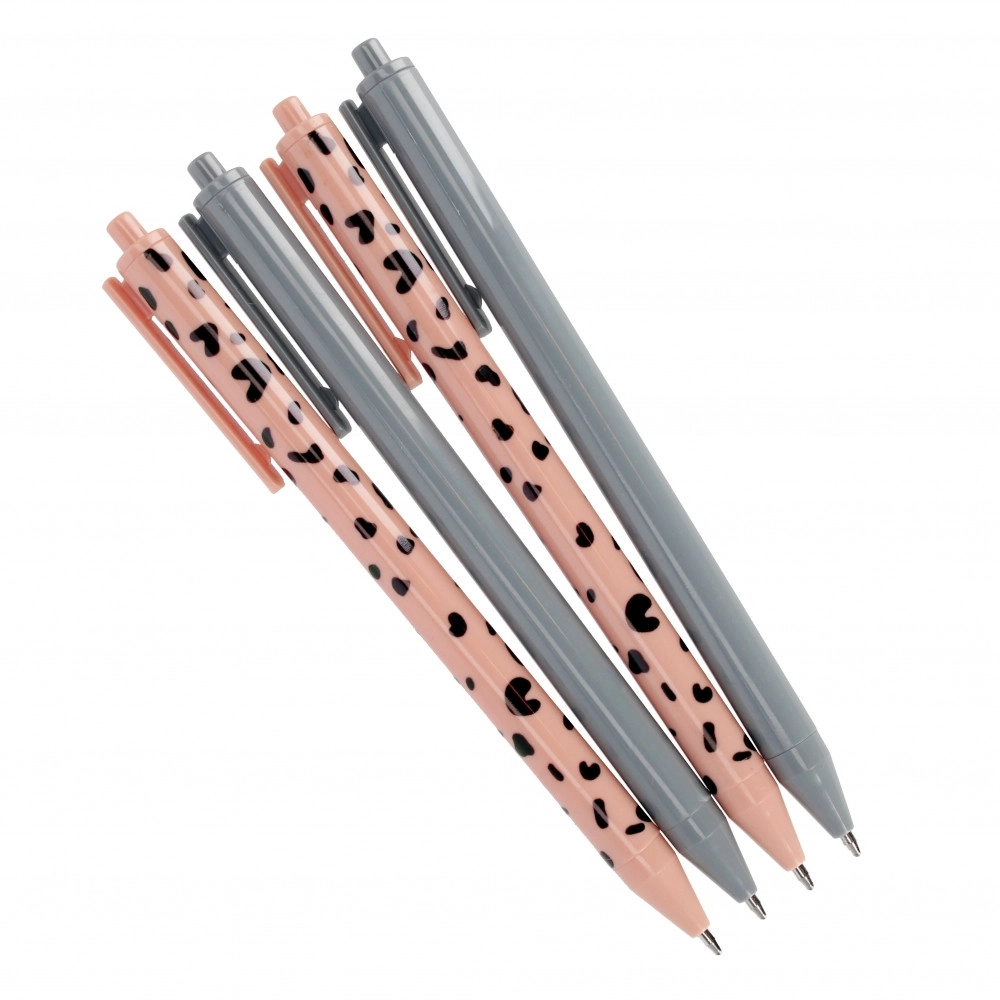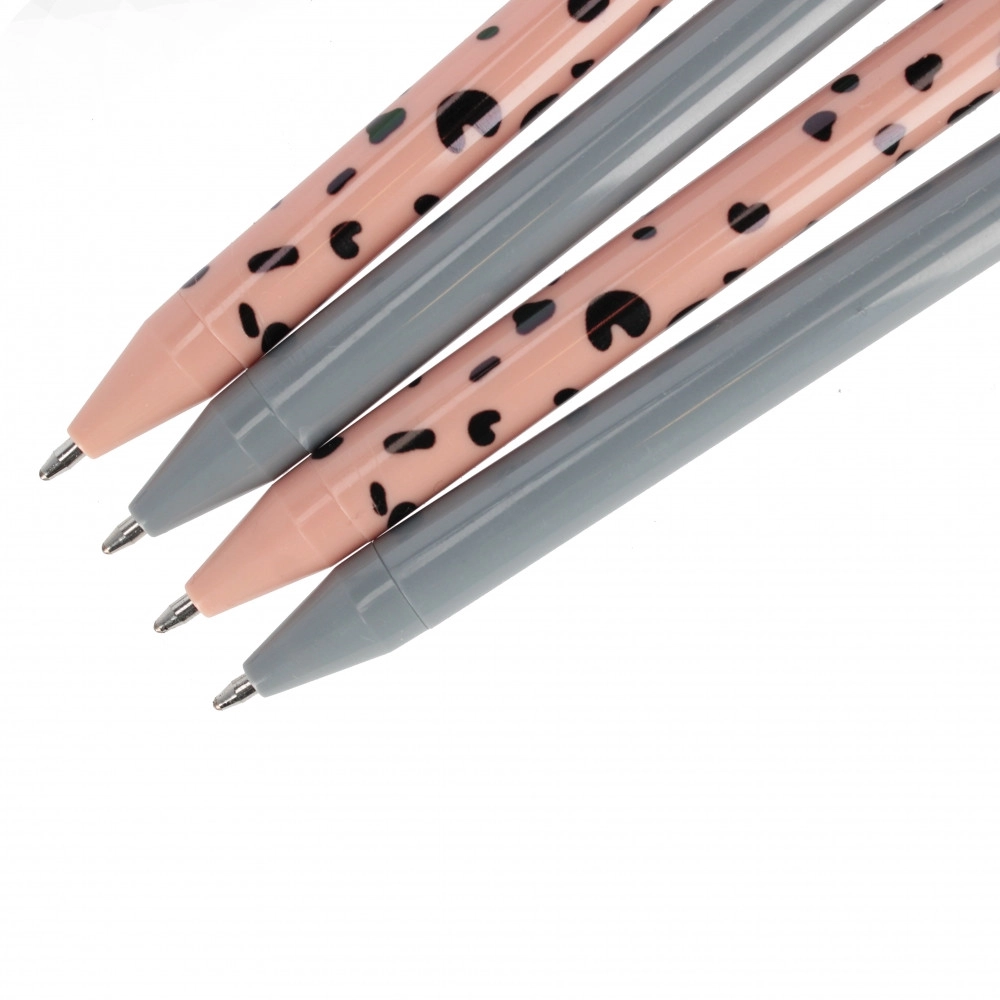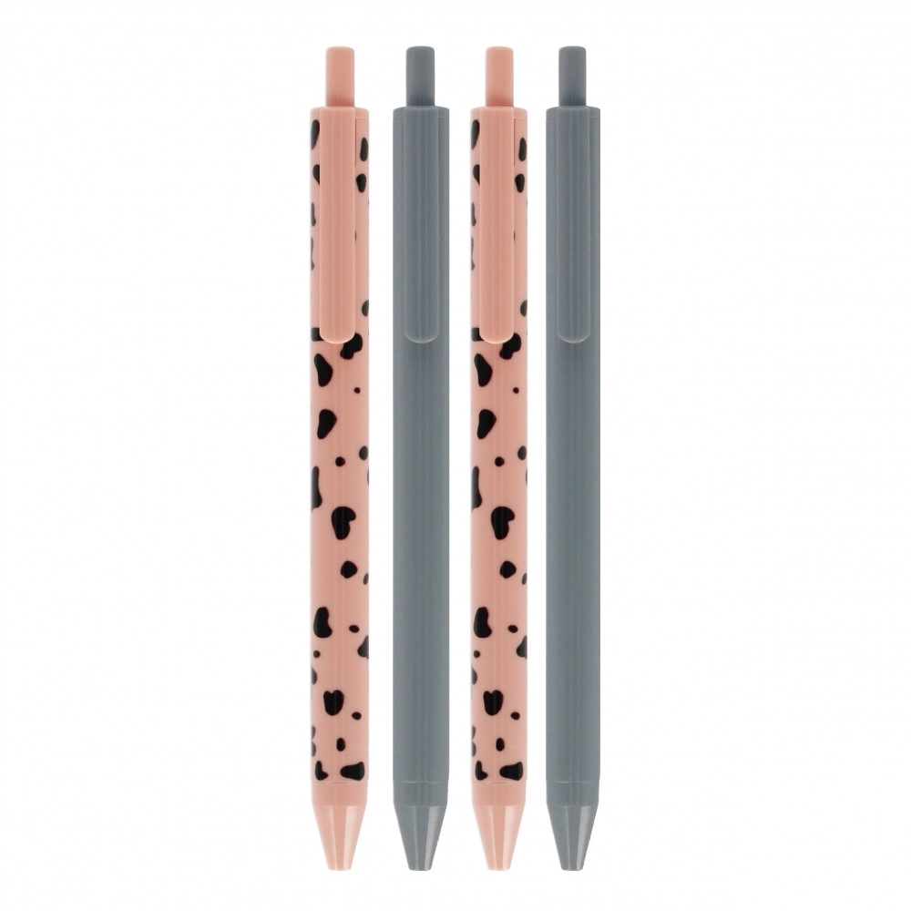 Deux stylos gris et deux stylos roses avec motif décoratif apporteront à votre bureau à la fois élégance et fantaisie.