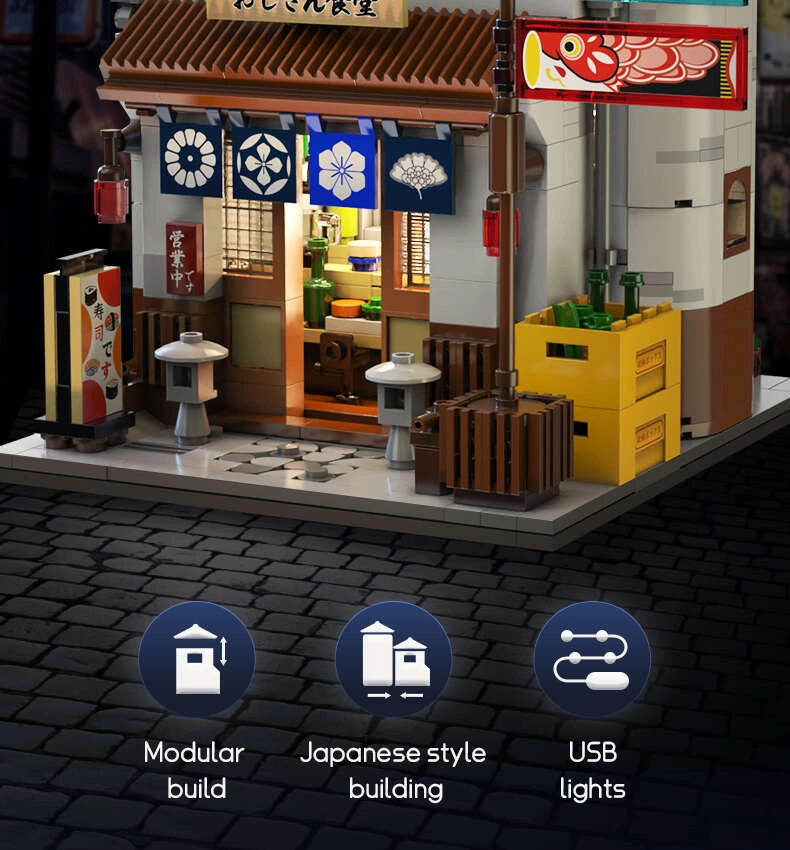 Le modèle regorge de petits accessoires : enseigne, bannière aux carpes koï, caisse postale ou à bouteilles, borne incendie, descente de gouttière, plantes grimpantes et autres éléments. Des parties mobiles, comme les portes ouvrantes, augmentent la jouabilité et l’authenticité. Le kit est idéal pour ceux qui aiment les projets manuels créatifs et souhaitent améliorer leur concentration ainsi que leur imagination.