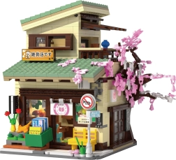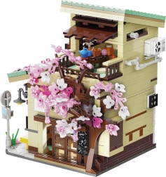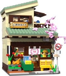 Ce kit haut de gamme apporte l’atmosphère authentique d’une ruelle urbaine japonaise. Une structure ouvrante unique permet d’observer facilement l’intérieur et d’admirer les détails soignés – du comptoir avec marchandises jusqu’au balcon paisible avec un petit cerisier sakura et un stand avec des carpes koï. Les lumières LED (8 effets) confèrent au modèle une ambiance du soir agréable.