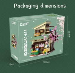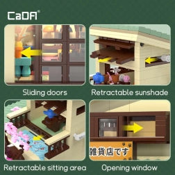 Découvrez le charme de l’architecture japonaise avec le kit de construction CaDA, qui, avec 921 pièces, crée une boutique modulaire détaillée avec accès à l’intérieur. Inclut un éclairage LED avec 8 effets, des éléments mobiles (portes coulissantes, auvent rétractable, fenêtre ouvrante) et de riches décorations dont un sakura, un bassin avec des carpes koï, des enseignes et une figurine maneki-neko.