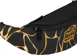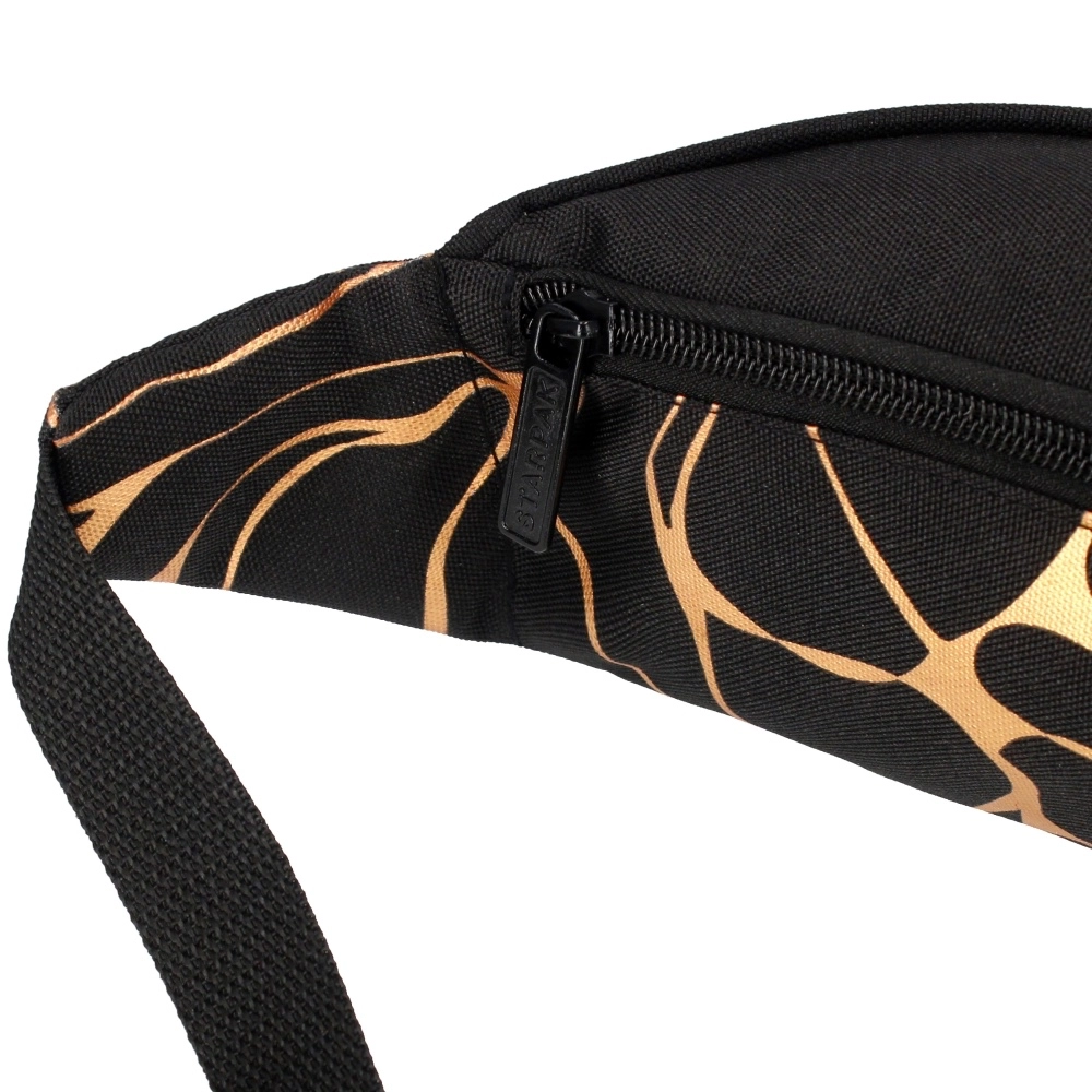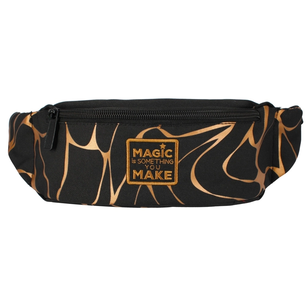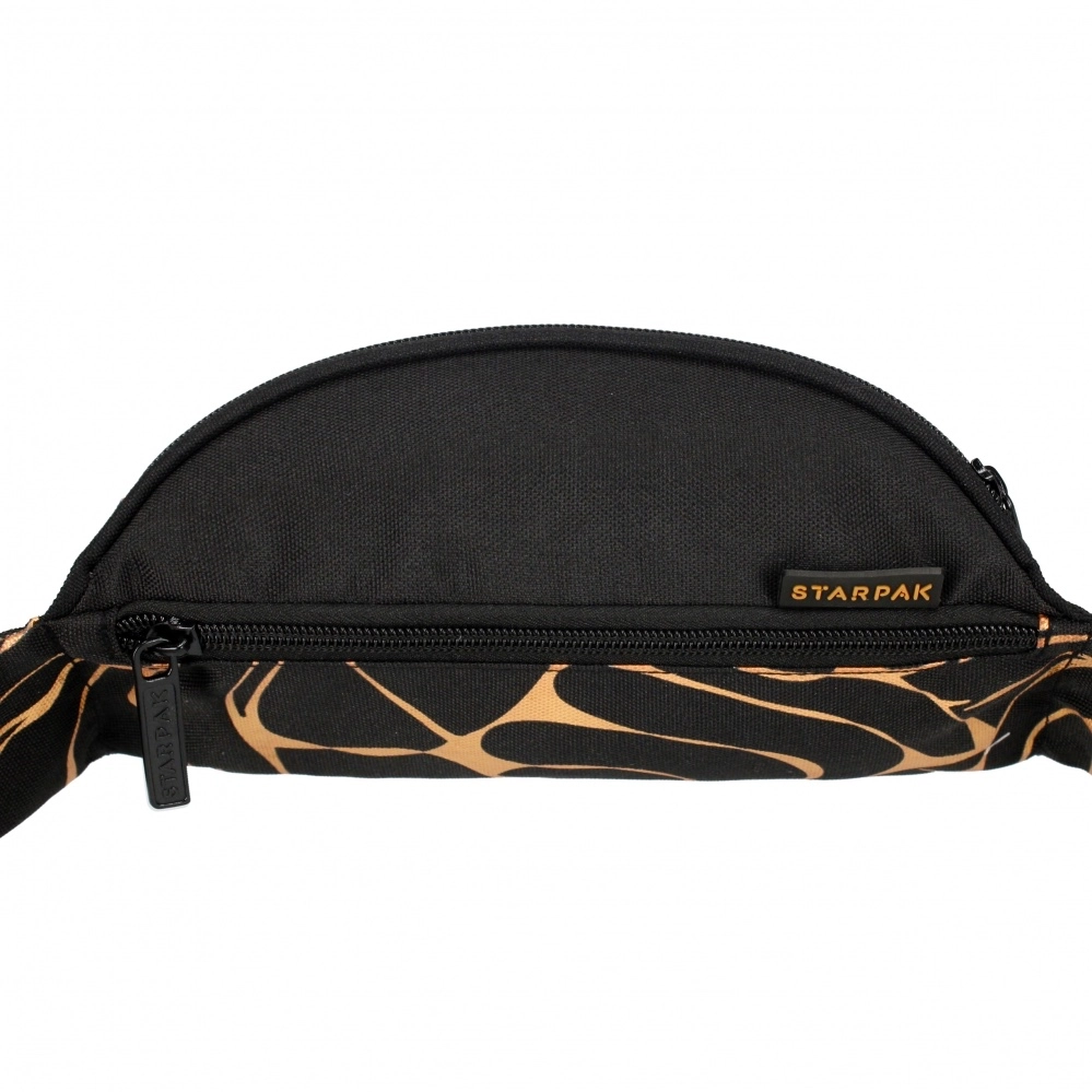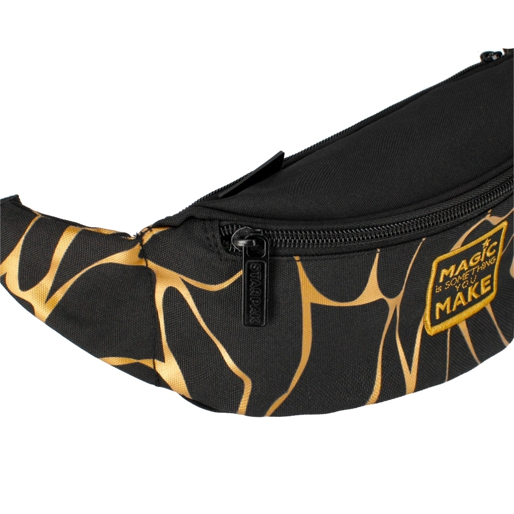 Découvrez la liberté de mouvement et les mains libres avec la banane STARPAK Golden. Le design noir élégant avec imprimé marquant et écusson textile « Magic is something you make » s’allie à une conception fonctionnelle : deux poches zippées gardent vos petits effets en ordre et en sécurité, tandis que la sangle réglable permet un port à la taille ou en diagonale sur la poitrine.