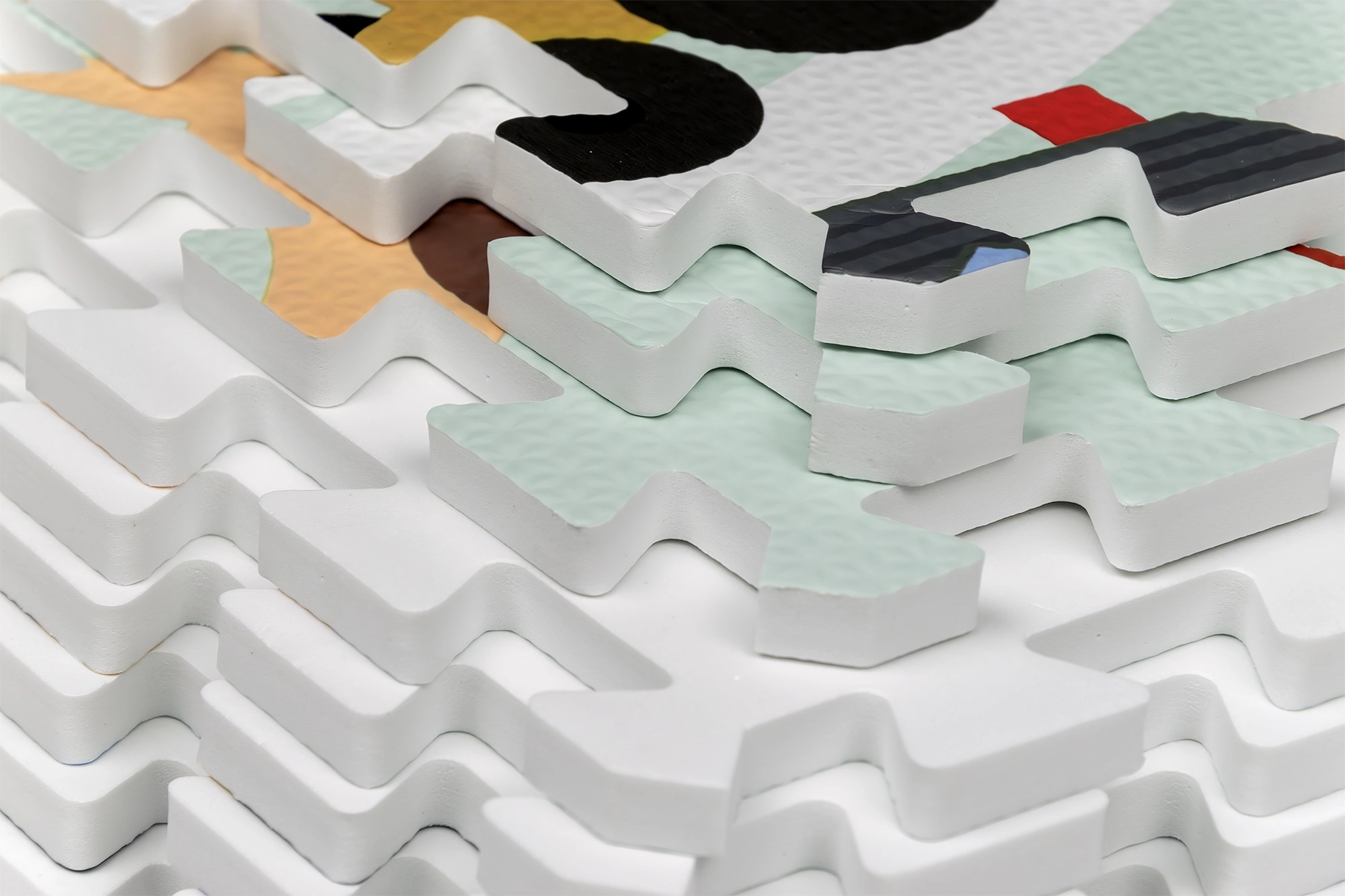 Le tapis est fabriqué en mousse EVA élastique sans substances nocives (sans phtalates, formamide, PVC ni BPA). La surface étanche se nettoie d’un simple chiffon humide – elle n’absorbe pas la poussière ni les acariens, idéale pour les personnes allergiques. Grâce à son épaisseur de 1 cm, il isole parfaitement du sol froid et amortit les impacts sur les surfaces dures (parquet, carrelage, stratifié).