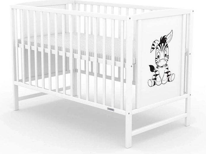 Lit bébé New Baby Bea Zebra, à la fois stylé et sûr, doté d’un côté coulissant pour un accès facile, de 3 positions de sommier pour s’adapter à l’âge de bébé, et d’un bois de pin de qualité avec finition écologique. Le design avec un adorable motif zèbre s’intègre parfaitement dans une chambre moderne et assure un sommeil sûr et aéré grâce aux lattes favorisant la circulation de l’air.