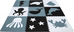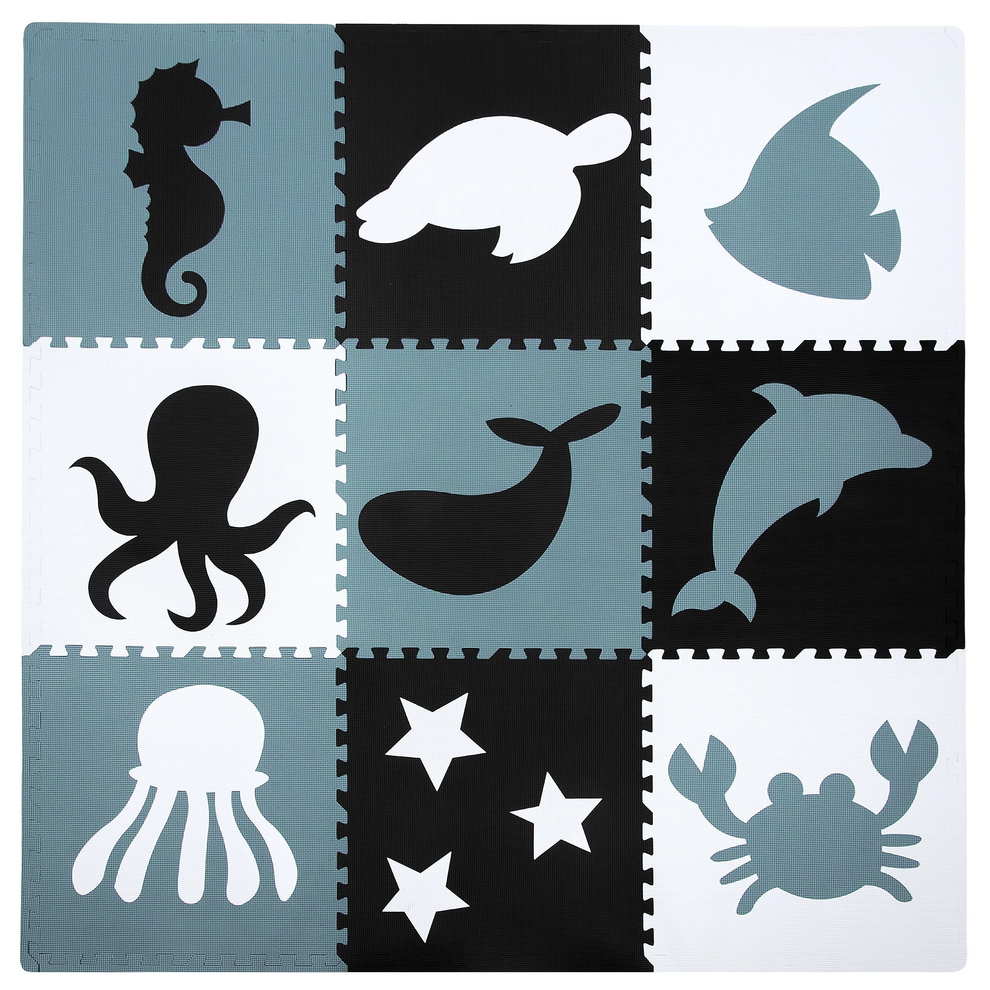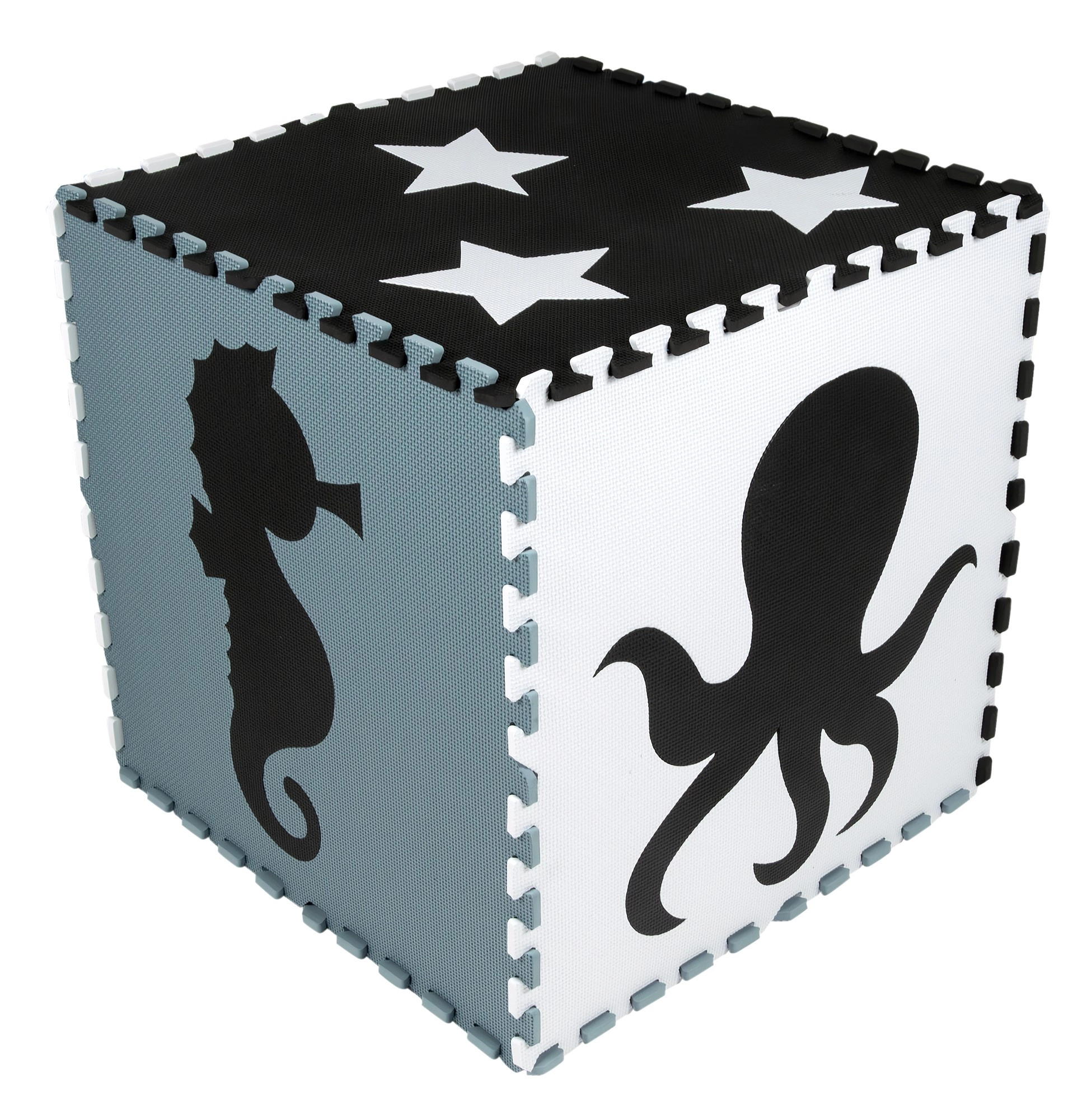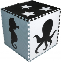 Des couleurs neutres et apaisantes ne distraient pas les enfants pendant le jeu et s’intègrent facilement à tout intérieur – chambre d’enfant, salle de jeux ou maternelle. Les éléments centraux amovibles avec formes (hippocampe, tortue, poisson, méduse, baleine, pieuvre, dauphin, étoiles et crabe) favorisent le développement de la motricité et l’apprentissage des animaux. Les éléments peuvent être étendus (au sein du même modèle) et assemblés en cube ou autres formes 3D.