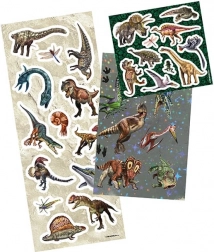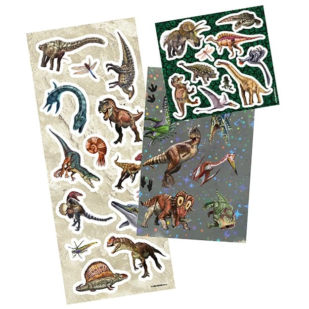 Un set ludique pour les petits passionnés de la préhistoire : petits autocollants dinosaures dans un kit pratique. Il comprend des autocollants classiques en papier, une planche à effet film et une planche avec paillettes colorées pour un éclat supplémentaire et plus de créativité.