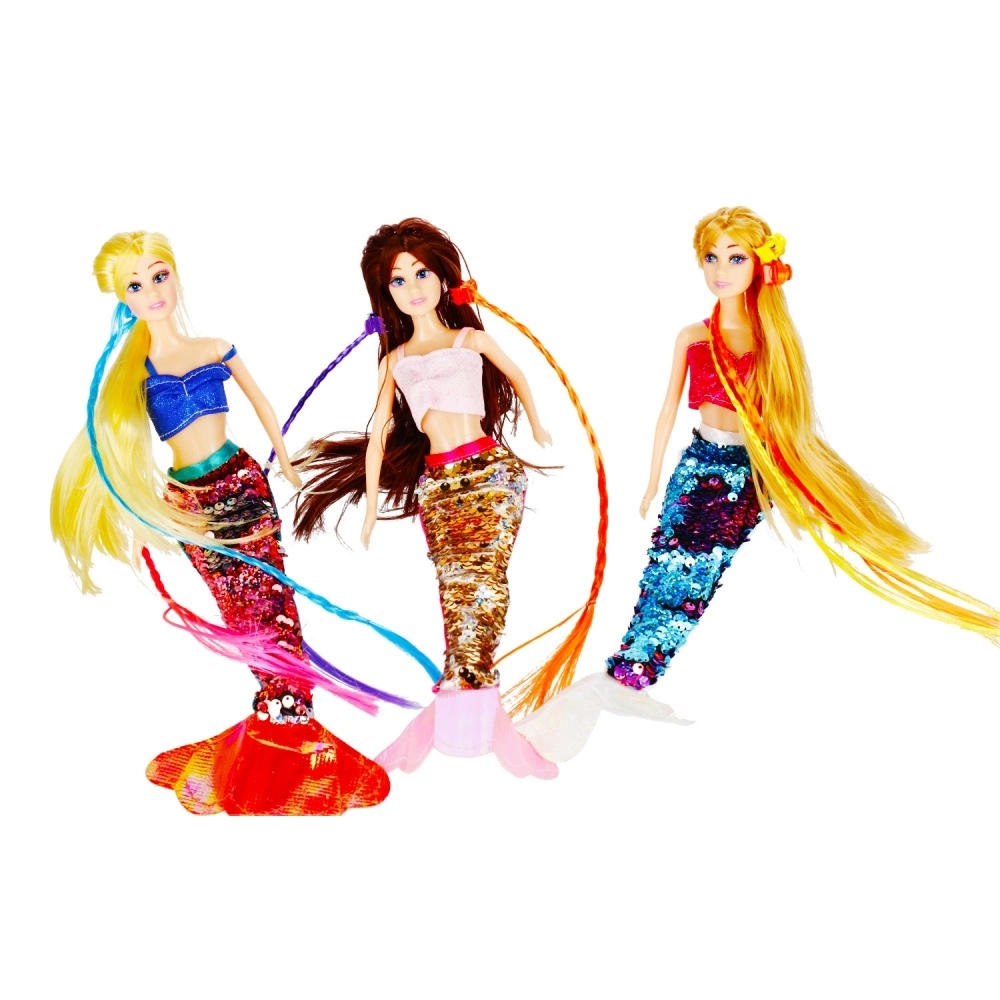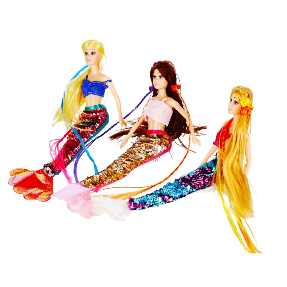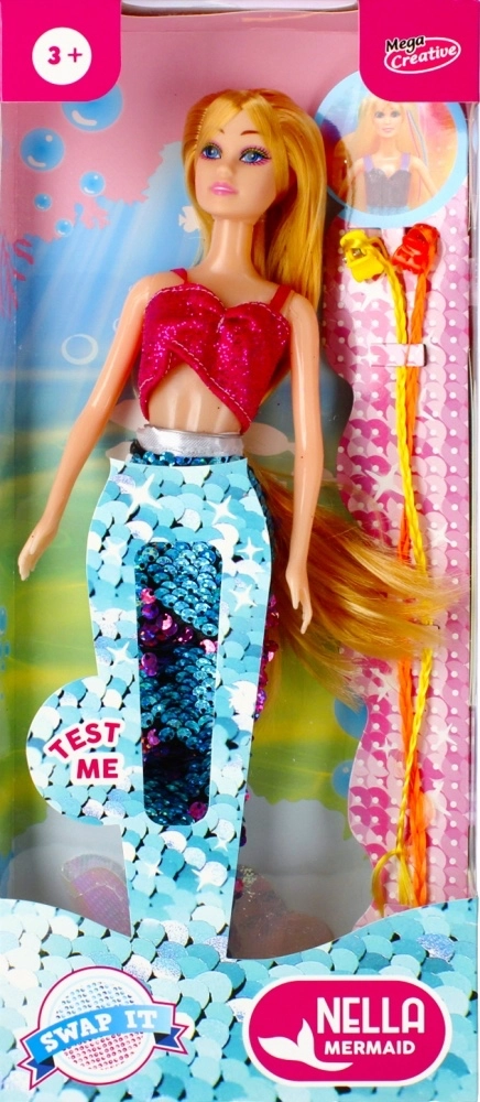 La poupée est disponible en plusieurs variantes de couleurs (or-rose, bleu-rose, violet et blanc), afin que chaque enfant trouve sa sirène préférée. Le coffret comprend 2 tresses supplémentaires et des accessoires de coiffure qui favorisent la motricité fine, la créativité et le jeu de rôle.