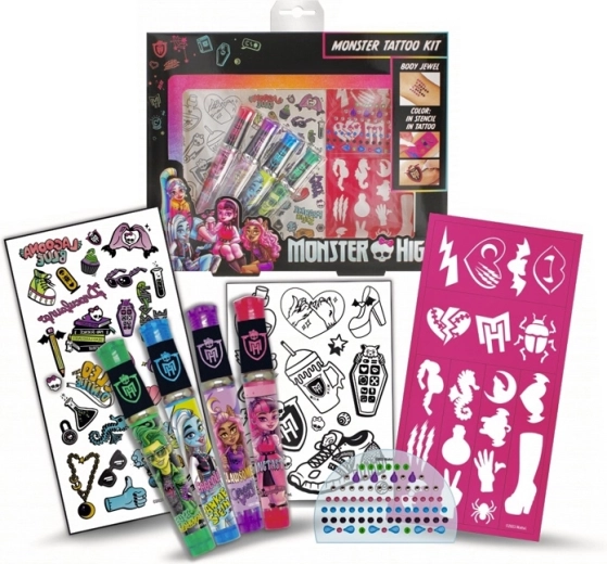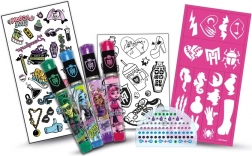 Découvrez la magie de l’univers MONSTER HIGH et créez des tatouages temporaires originaux, pleins d’éclat et de fantaisie. Le set comprend 4 stylos gel pailletés, des tatouages autocollants métallisés, des cristaux, des autocollants décoratifs et des pochoirs pour une décoration facile et précise. Idéal pour les enfants, les fêtes créatives et comme cadeau.