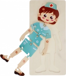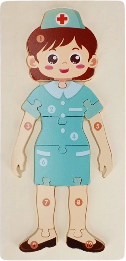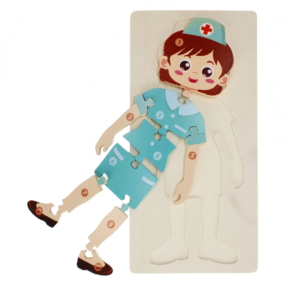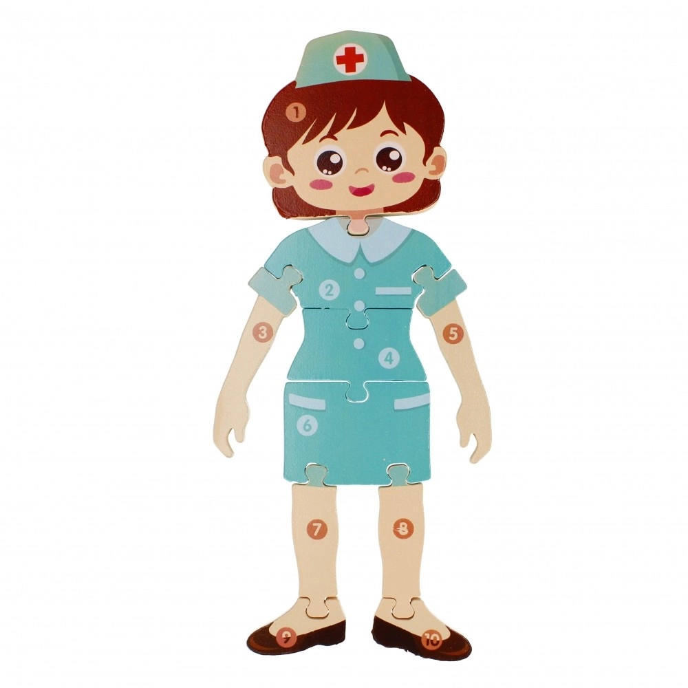Adorable puzzle en bois sur le thème de l’infirmière qui ravira les petits comme les parents. Il contient 10 pièces solides et est idéal pour développer la motricité fine, la logique et la patience. Grâce au bois de qualité et aux finitions lisses, le jeu est non seulement amusant mais aussi sûr. 10 pièces en bois, format 15 × 30 cm, conception durable et sûre.