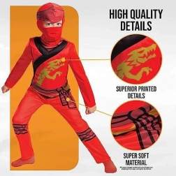 La couleur rouge vive, l’impression dragon et les détails caractéristiques transforment l’enfant en son ninja préféré en un instant.