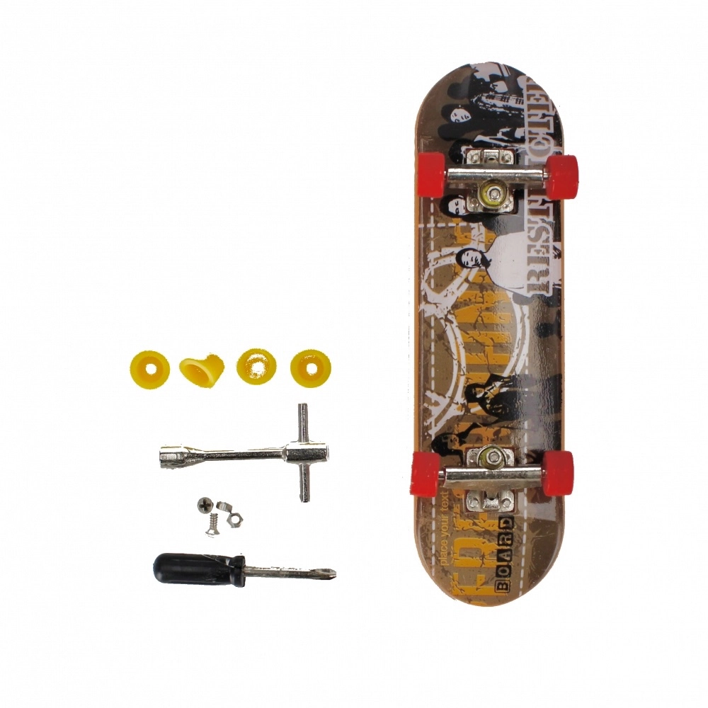 Le coffret inclut de nombreux accessoires qui permettent un entretien facile et des réglages personnalisés. Les roues peuvent être remplacées en toute simplicité et, avec les tournevis fournis, le montage est un jeu d’enfant. Le mini skateboard est disponible en quatre designs et couleurs attrayants, pour que chacun trouve son style.