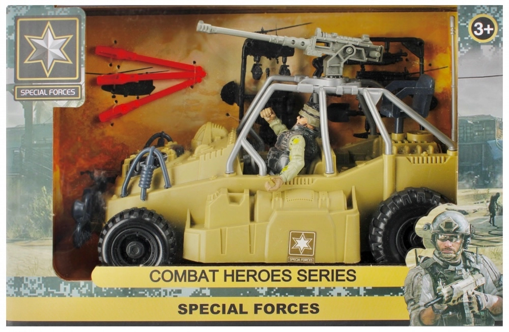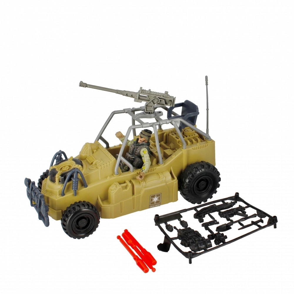 L’action commence avec ce robuste 4x4 militaire pour opérations spéciales. Les enfants apprécieront les grandes roues tout-terrain, les accessoires réalistes et les fonctions de tir pour un jeu palpitant. Idéal pour les petits soldats dès 3 ans.