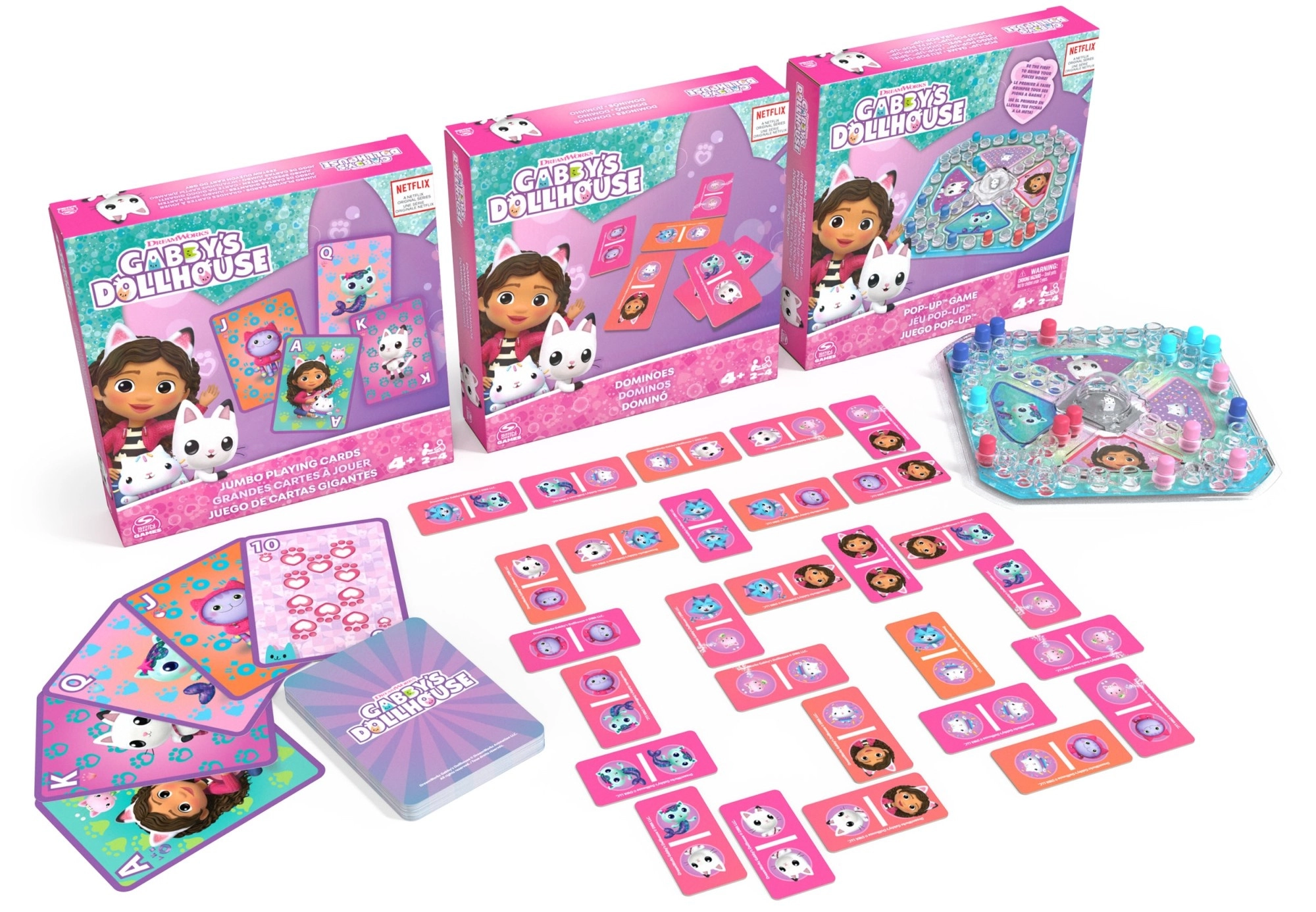 Découvrez trois jeux familiaux populaires dans un seul coffret aux couleurs de la série La Maison de Gabby. Les enfants apprécieront l’assemblage d’images au domino, la course palpitante sur le plateau en plastique avec dé sous cloche Pop-Up et le jeu avec de grandes cartes jumbo.