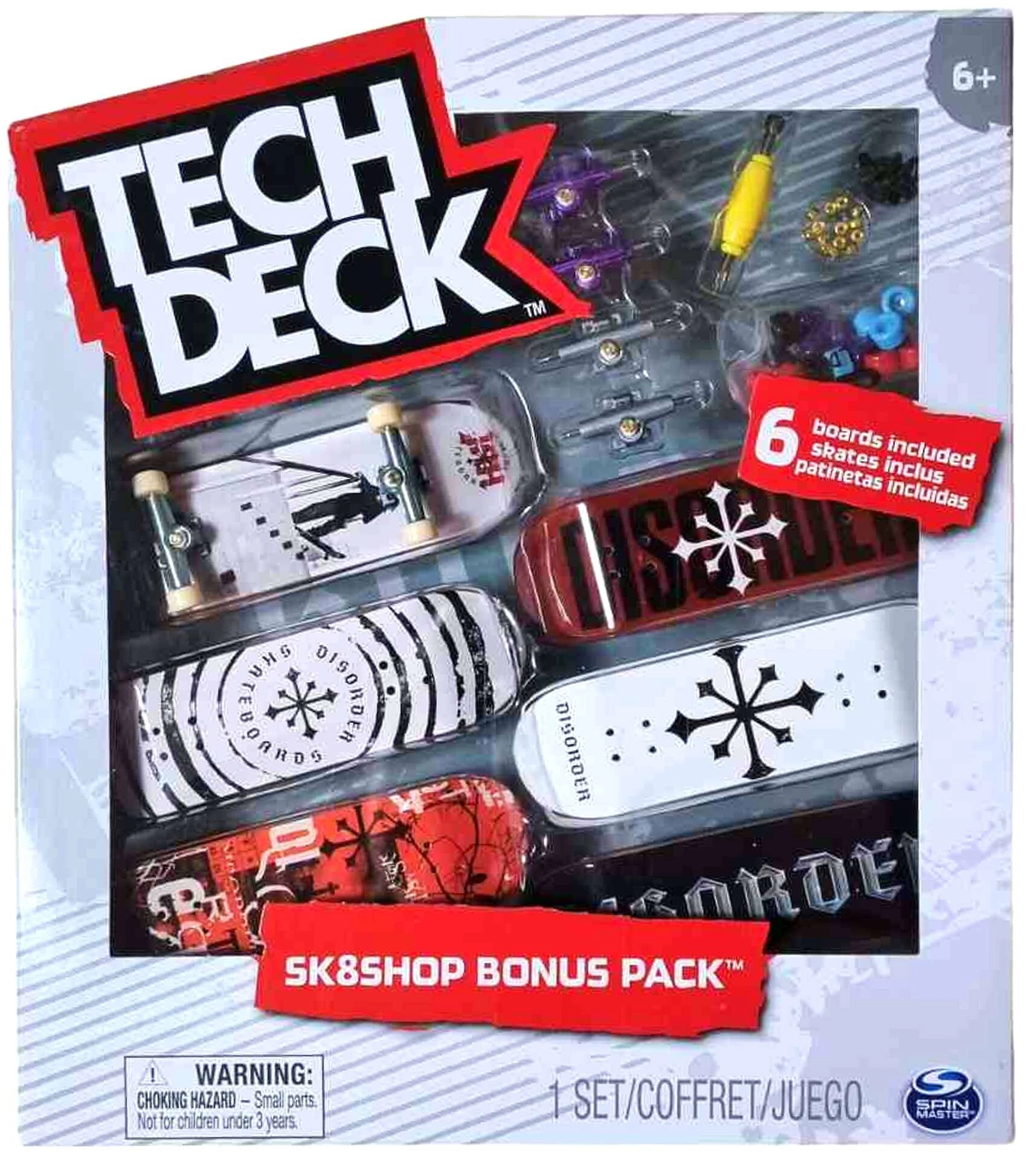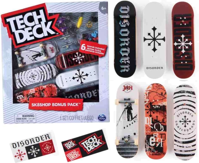 Découvrez les fingerboards légendaires TECH DECK dans le riche coffret Sk8Shop 6 Pack Disorder avec accessoires. Assemblez vos mini skateboards de A à Z, entraînez-vous aux tricks du bout des doigts et améliorez votre coordination. Idéal pour débutants comme pour collectionneurs – des heures de fun et d’innombrables possibilités de combinaison.