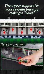 Le modèle est divisé en six modules (terrain, quatre tribunes et toit), ce qui permet de le démonter facilement et d’observer l’intérieur. La fonction unique de « vague » permet, via une molette rotative, d’animer les sièges vers le haut et le bas – comme dans un stade réel. Grâce à son design réfléchi et sa construction robuste, il est idéal pour la construction, l’exposition et les collectionneurs.