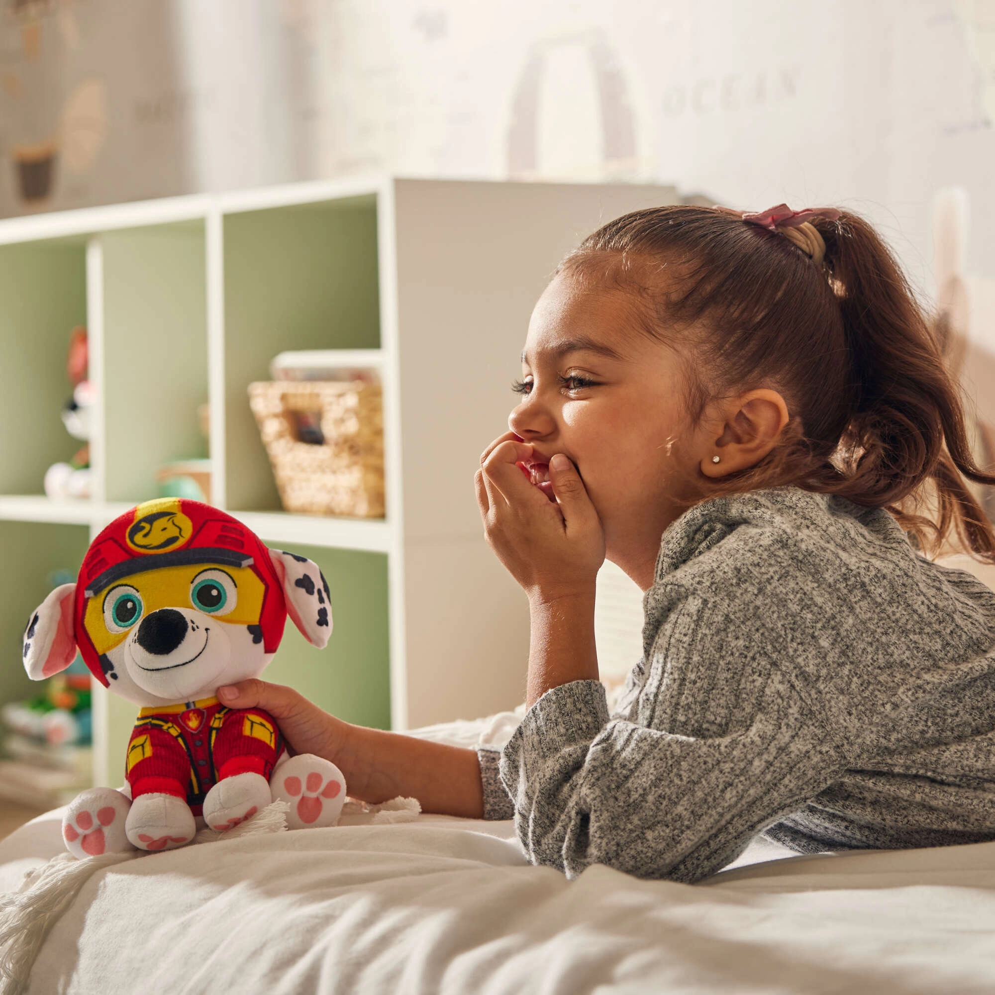 Un matériau moelleux et un rembourrage léger garantissent que Marshall est idéal pour les câlins et le coucher.