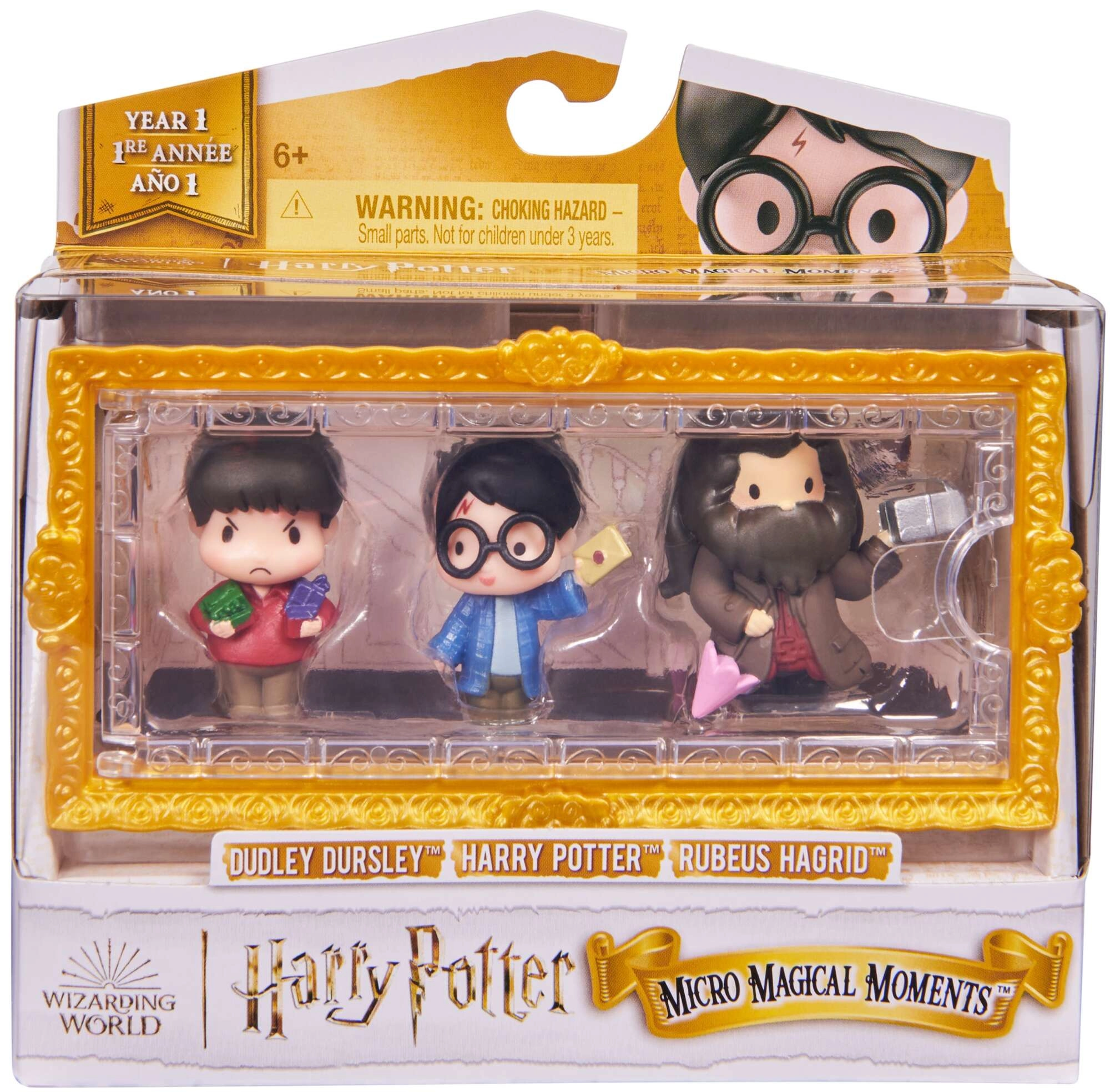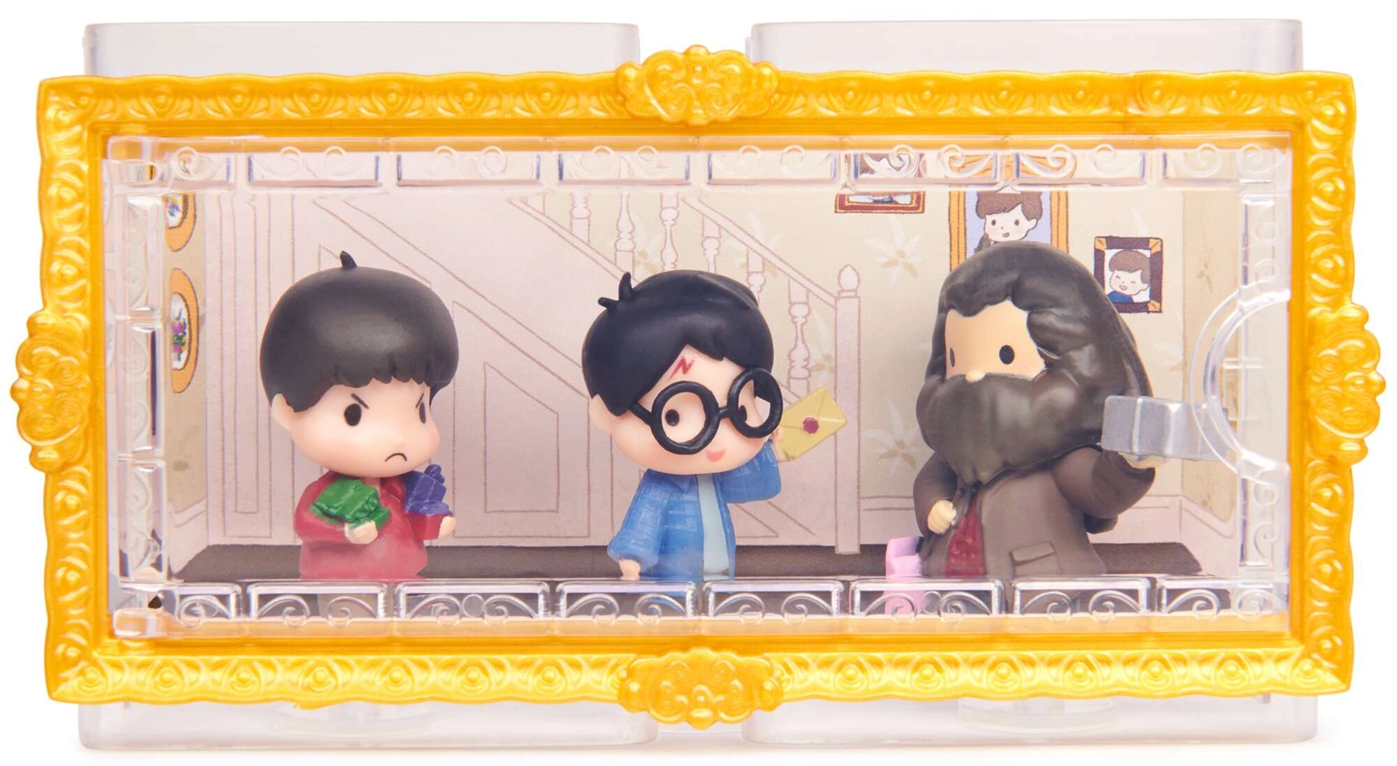 Découvrez la magie de la série Micro Magical Moments et créez votre propre mini diorama de Poudlard. Les figurines Harry Potter, Rubeus Hagrid et Dudley Dursley sont présentées dans un étui pratique avec fenêtre transparente qui les protège tout en les exposant avec style. Chaque personnage a des accessoires iconiques – Hagrid avec une boîte et un parapluie, Harry avec sa lettre et Dudley avec ses jouets.