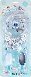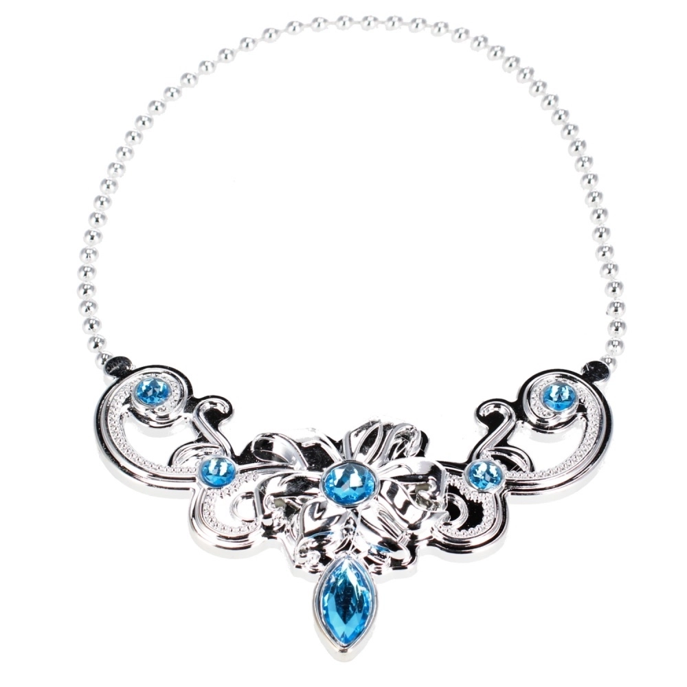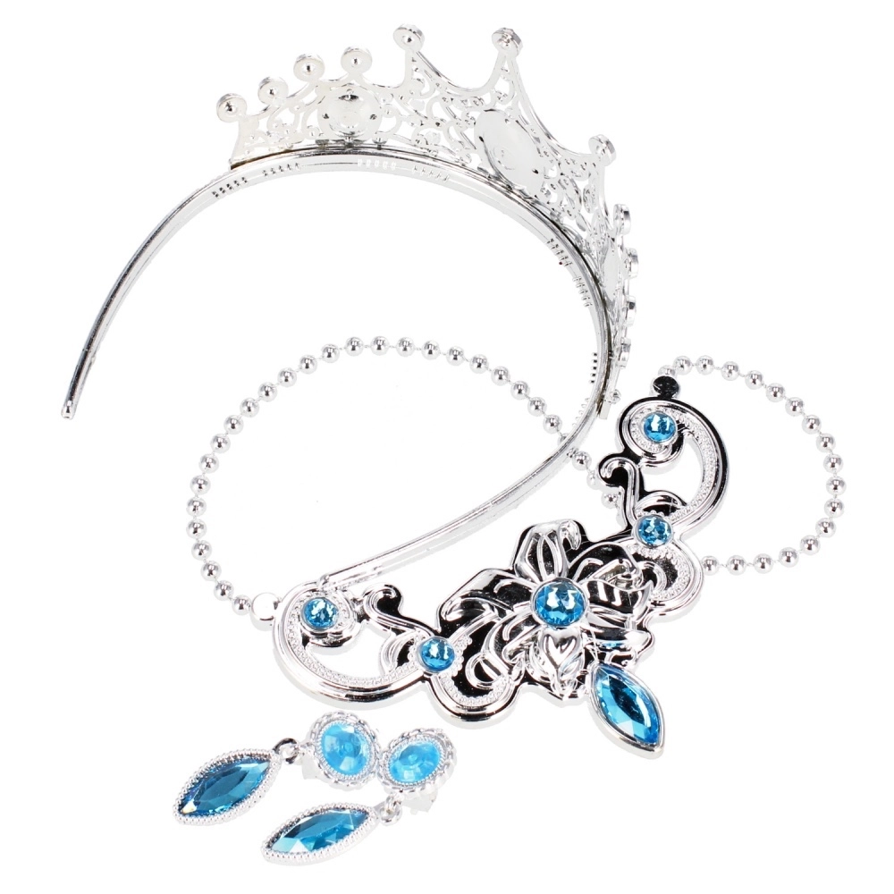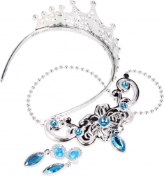 Un ensemble de bijoux avec un fin décor filigrané et des pierres étincelantes complète magnifiquement le costume de princesse des glaces.