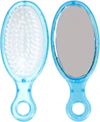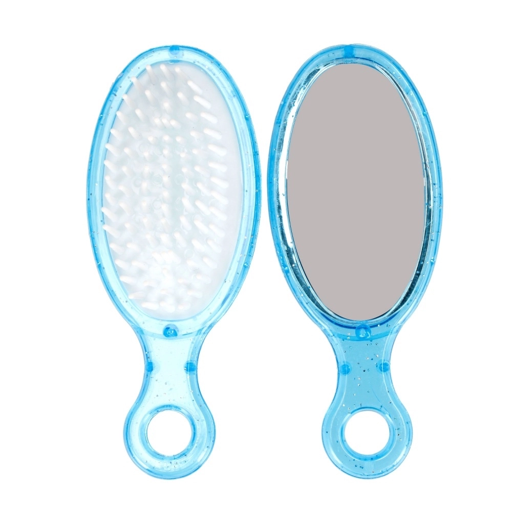 Une brosse légère bleue et un miroir à main assorti permettent aux enfants de peigner, coiffer et vérifier leurs coiffures en jouant au salon de beauté.
