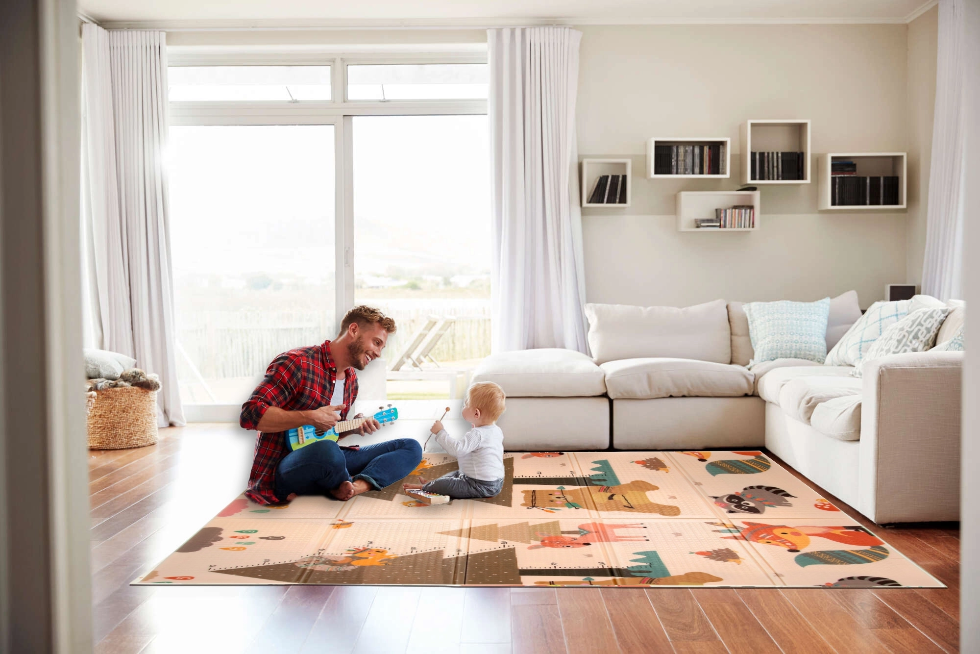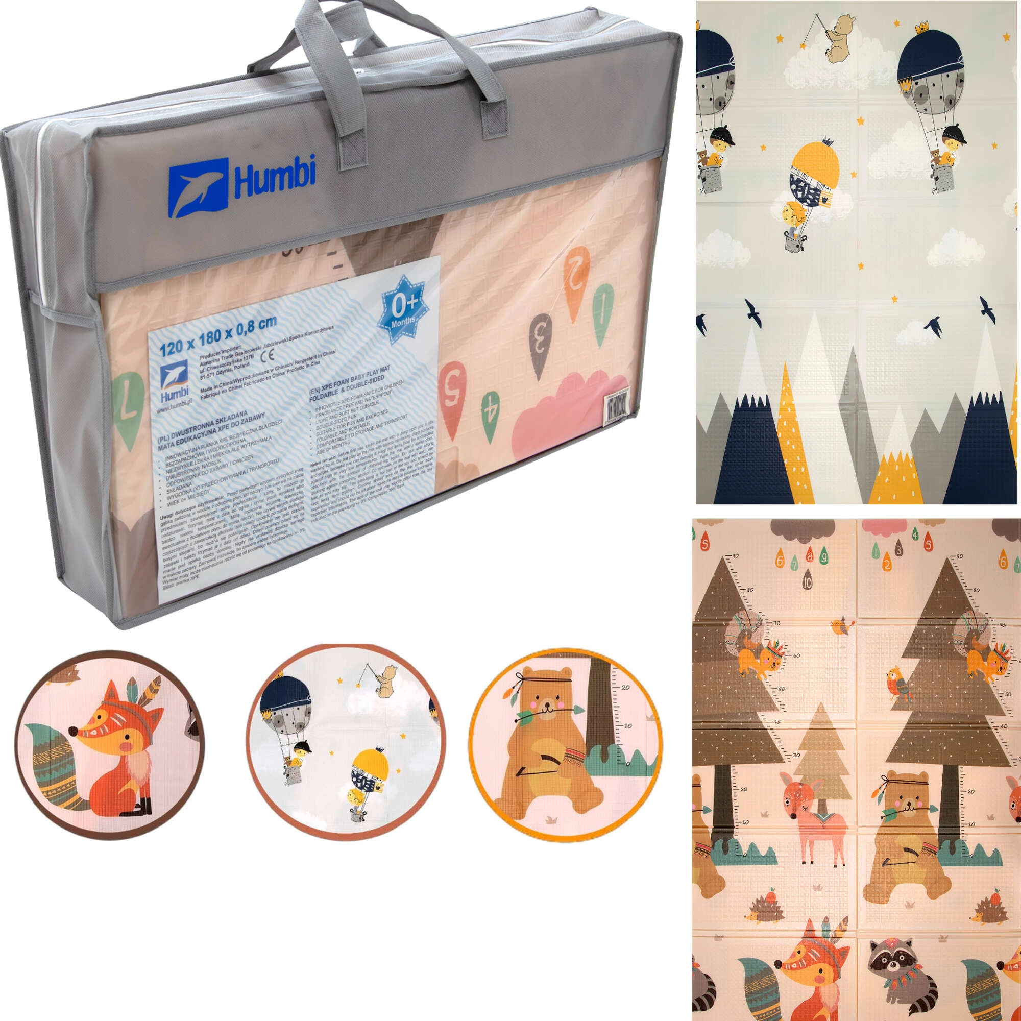 Le tapis HUMBI en mousse XPE premium offre une excellente absorption des chocs, une isolation contre le sol froid et une surface antidérapante à léger relief pour un rampement sécurisé et les premiers pas. Il est réversible – d’un côté de mignons animaux de la forêt, de l’autre un motif montagne et aventure – vous harmonisez ainsi facilement le look avec l’intérieur et l’humeur de l’enfant.