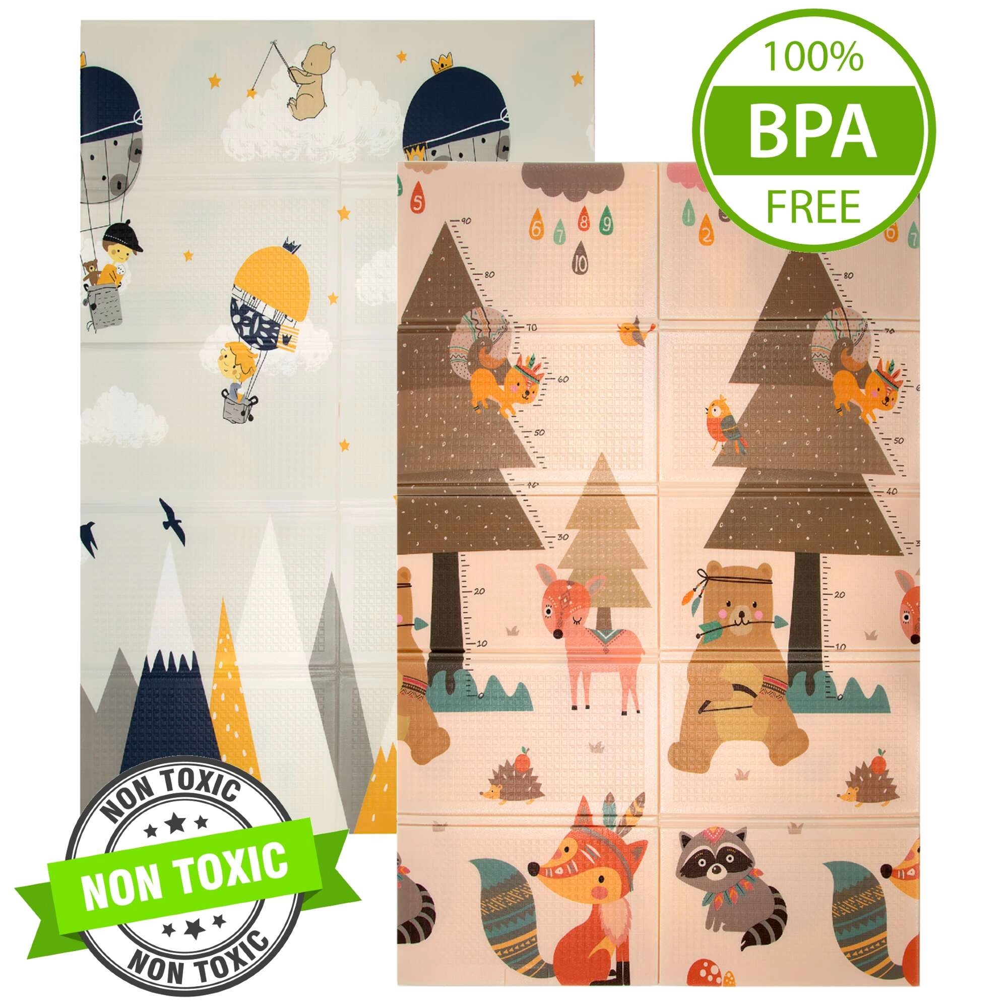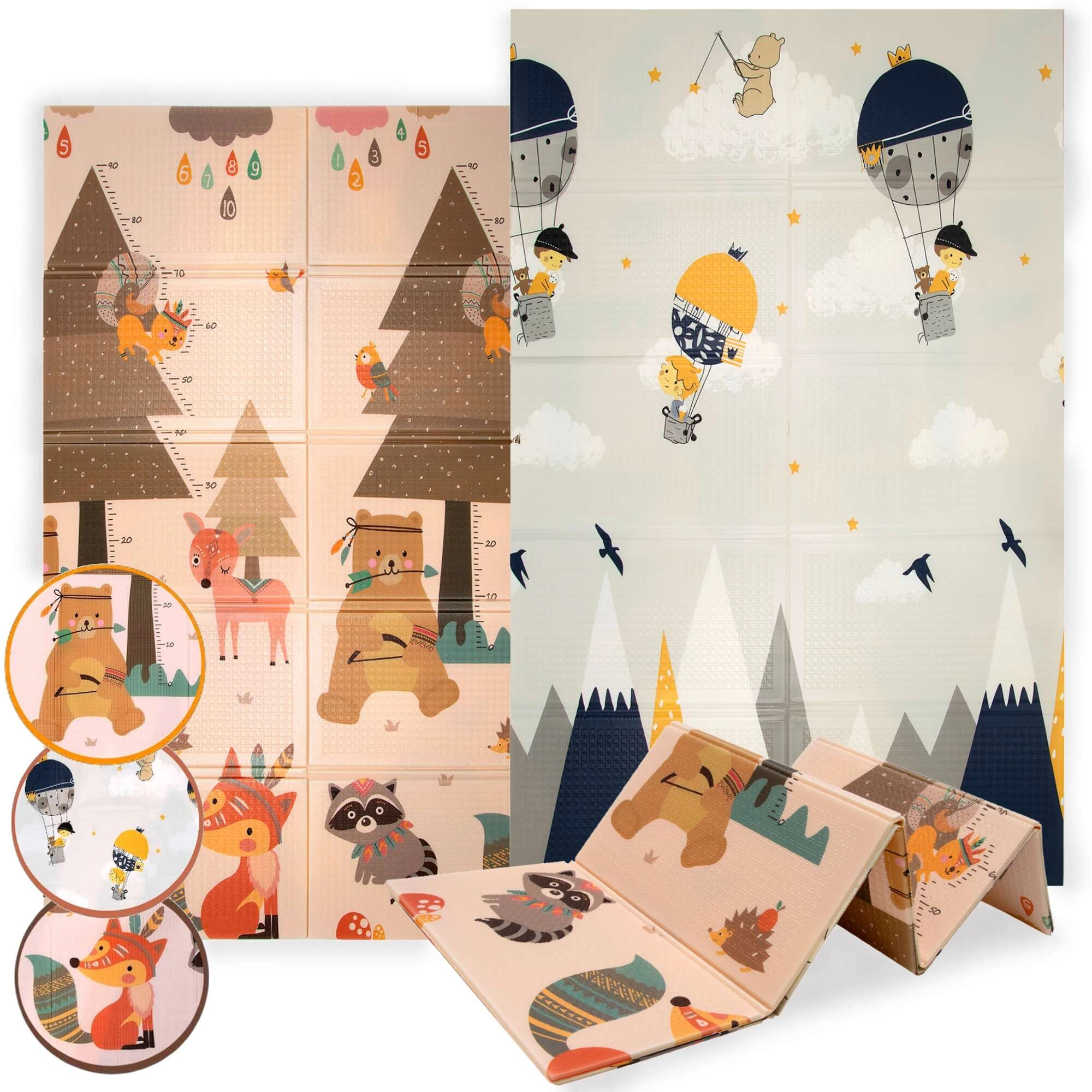 Deux faces aux motifs joyeux stimulent le développement sensoriel et le jeu. La surface légèrement texturée et antidérapante favorise un rampement sécurisé et les premiers pas.