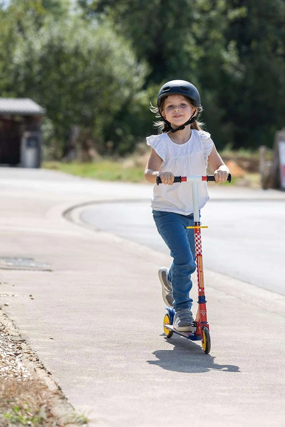 La sécurité est renforcée par le plateau antidérapant et le frein arrière type garde-boue. Les poignées en mousse souple sont agréables en main et les roues silencieuses assurent une glisse fluide sur le trottoir. Le design avec le héros Flash McQueen ravira tout fan de la série animée.