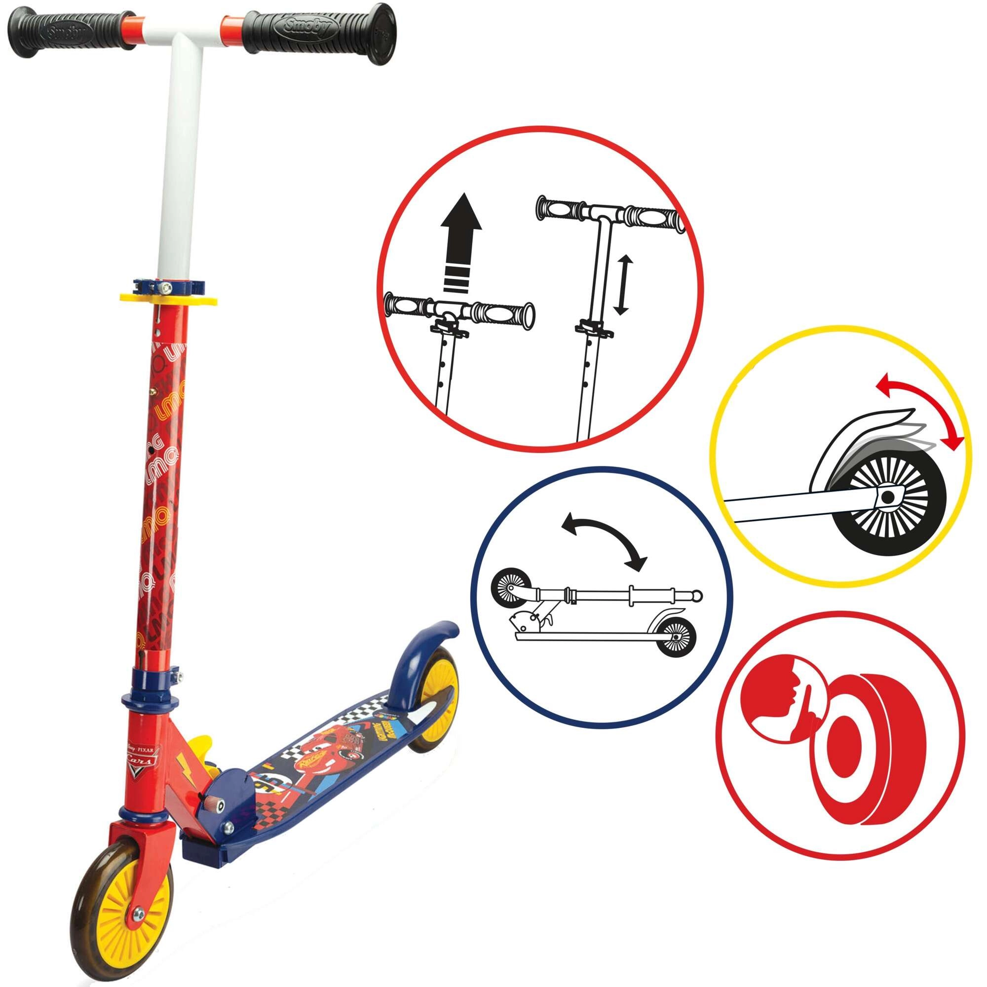 Trottinette pour enfants légère et robuste avec motif CARS – Flash McQueen, offrant une structure pliable, une hauteur de guidon réglable et un frein arrière à pédale pour une conduite sûre et amusante. Grâce à son cadre en aluminium, son plateau antidérapant et ses roues silencieuses, elle est idéale dès 5 ans, avec une charge maximale jusqu’à 50 kg.