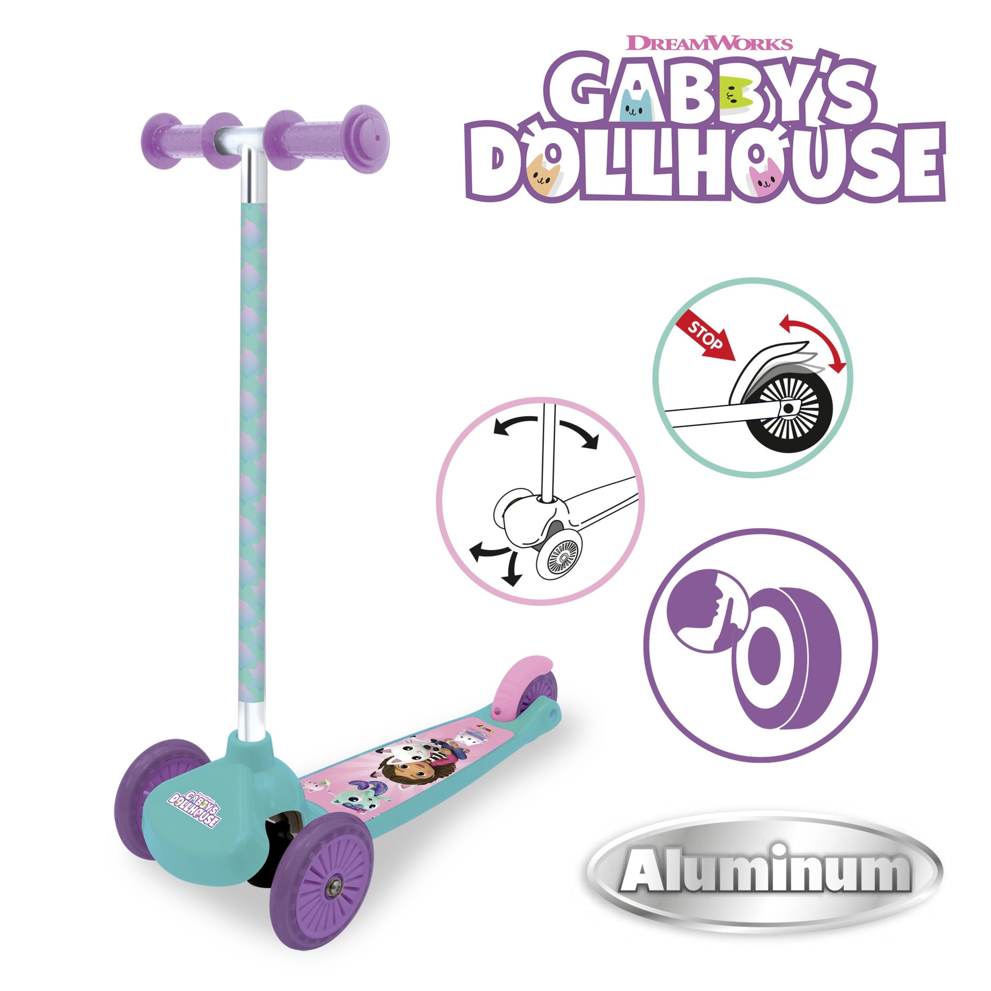 Trottinette stylée en turquoise et violet avec les héros chats préférés, elle ravira tous les fans de la série Maison de poupée de Gabby. La qualité de SMOBY garantit légèreté, résistance et confort à chaque sortie. Grâce aux deux roues avant, la conduite est stable et intuitive, ce qui aide les enfants à apprendre facilement à garder l’équilibre et le maintien.