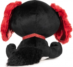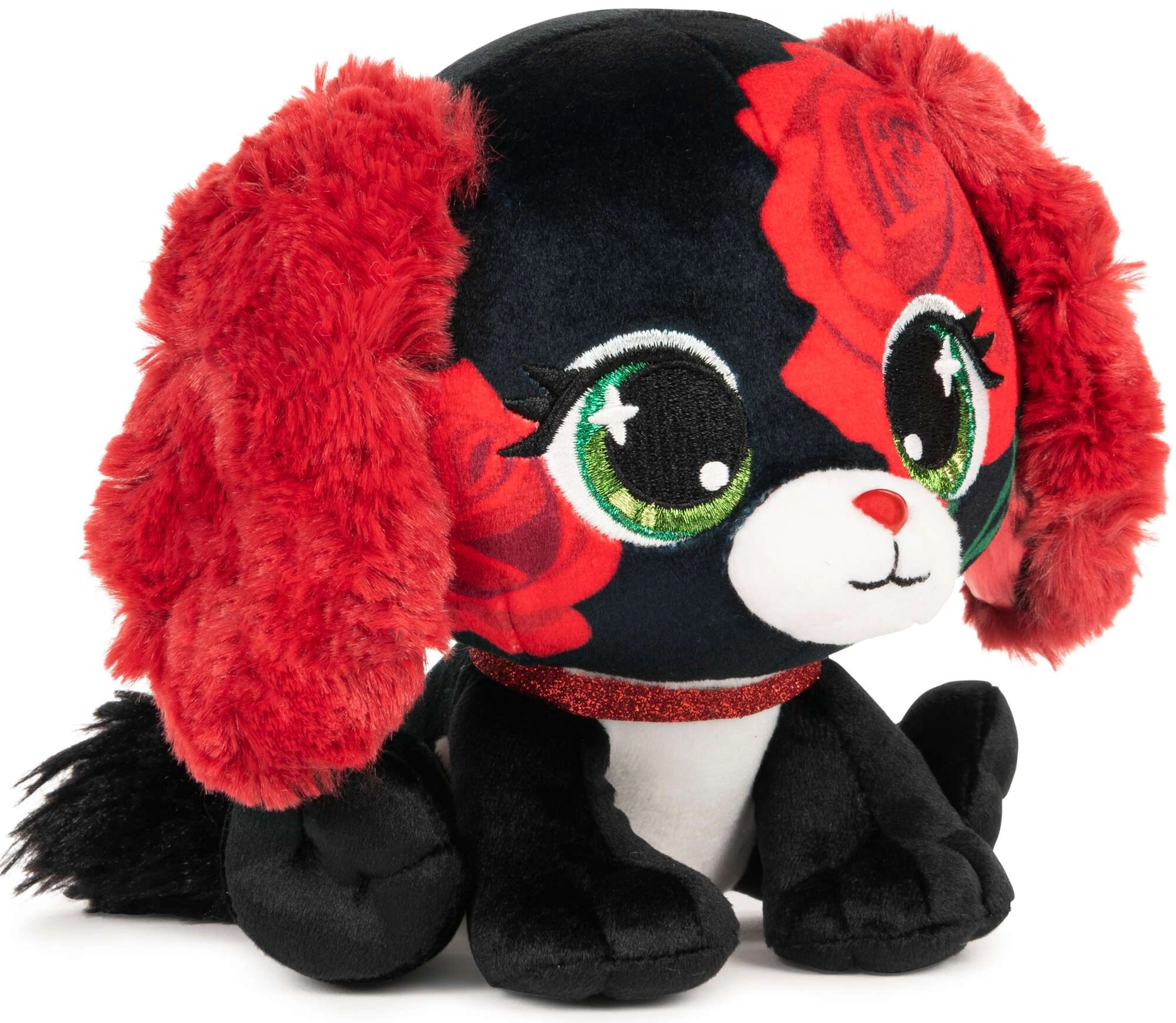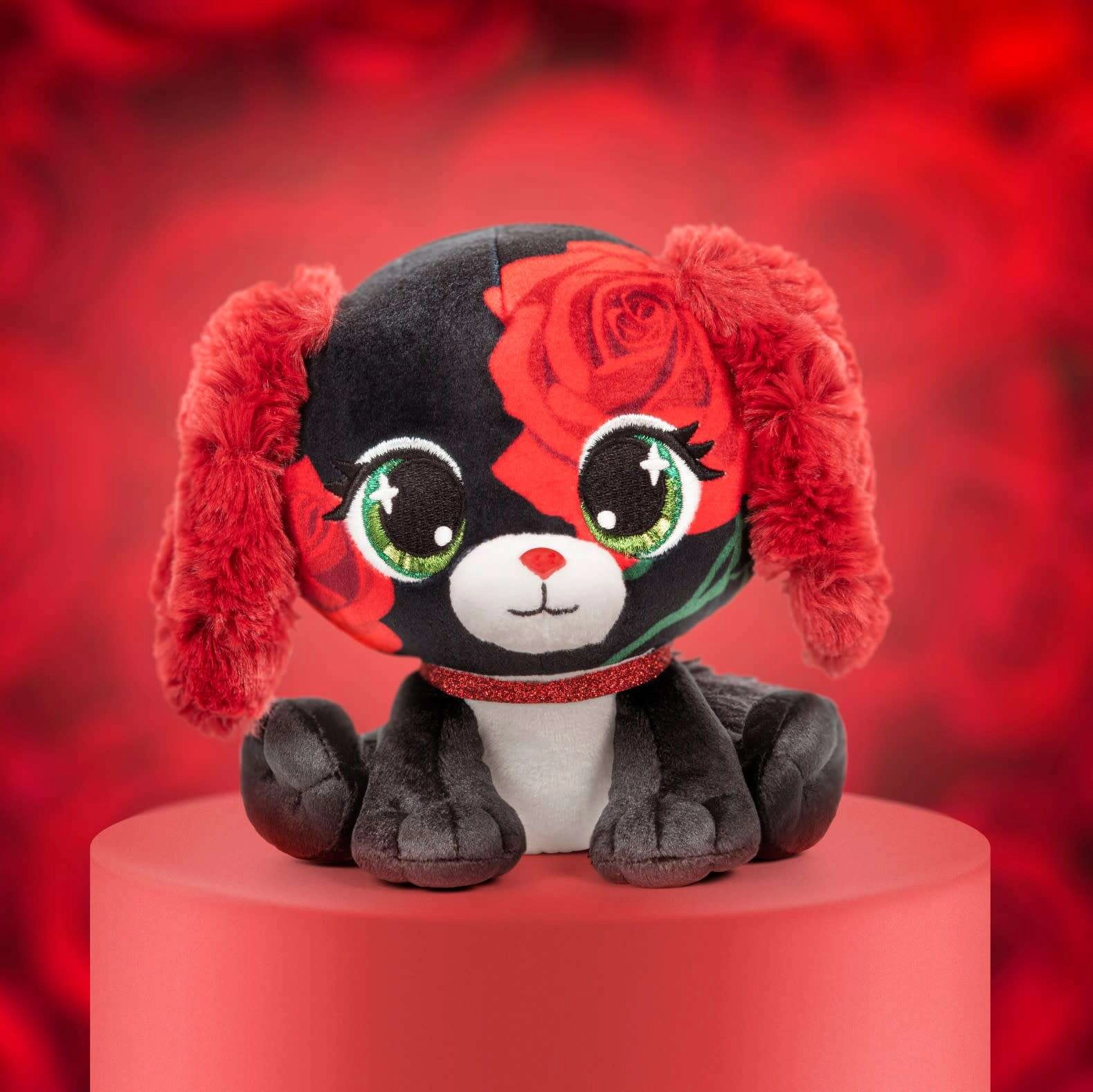 Voici un compagnon stylé de la collection P.Lushes Pets – le chien Anna Dolce. Il séduit au premier regard par sa fourrure noire contrastée parsemée de roses rouges, ses oreilles rouge velouté et son adorable petit museau. Le collier scintillant ajoute une note d’élégance et en fait un cadeau parfait pour les petits comme pour les grands amateurs de peluches.