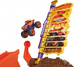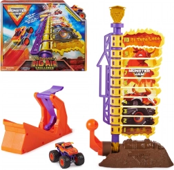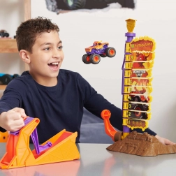 Installez le lanceur, visez et propulsez votre camion EL TORO LOCO vers les hauteurs. La tour de score avec niveaux numérotés montre instantanément jusqu’où vous êtes monté – atteignez le sommet et profitez d’un “feu d’artifice” spectaculaire. Grâce aux 5 angles réglables du lanceur, basculez facilement entre hauteur et distance de saut pour améliorer vos performances.