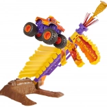 Camion culte avec grandes roues, châssis haut et “cornes” caractéristiques dans un design orange‑jaune. Prêt pour des atterrissages durs et une nouvelle tentative.