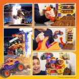 Le set est idéal pour jouer seul ou pour des défis entre amis. Une conception bien pensée avec une base solide style piste “dirt”, des couleurs vives et les graphismes authentiques Monster Jam renforcent le réalisme. Le camion à l’échelle 1:64 avec gros pneus et châssis haut encaisse les atterrissages et repart aussitôt.