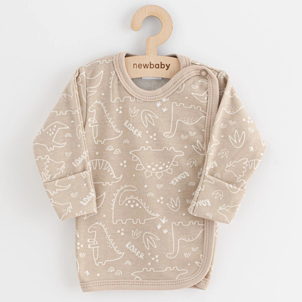 Le set comprend 3 pièces dans un mélange harmonieux de motifs : une beige unie, une avec des dinosaures et une avec des petites étoiles. Les manches repliables aident à éviter les griffures des ongles et à conserver la chaleur, idéales pour les nouveau-nés et les jeunes nourrissons.