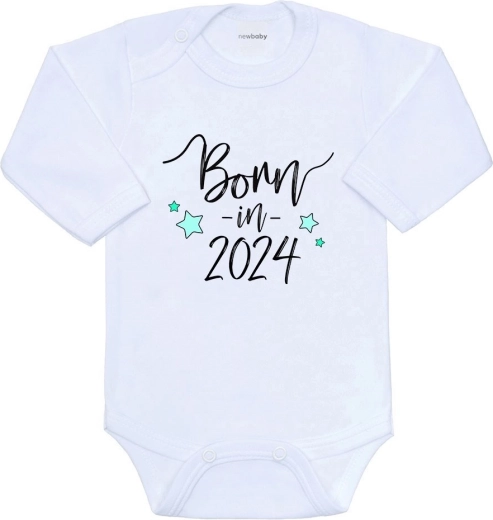 Le body NEW BABY pratique et doux avec l’inscription Born in 2024 est idéal au quotidien. Grâce au coton 100 % de qualité, il est respirant, moelleux et agréable pour la peau sensible des tout-petits. Les encres certifiées utilisées pour l’impression sont sûres pour les bébés.