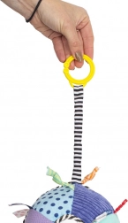 Le jouet développe la vue, l’ouïe et le toucher grâce à la variété des tissus, rubans et au hochet sécurisé. Il favorise également la préhension et la coordination main–œil, idéal pour les tout-petits dès la naissance.